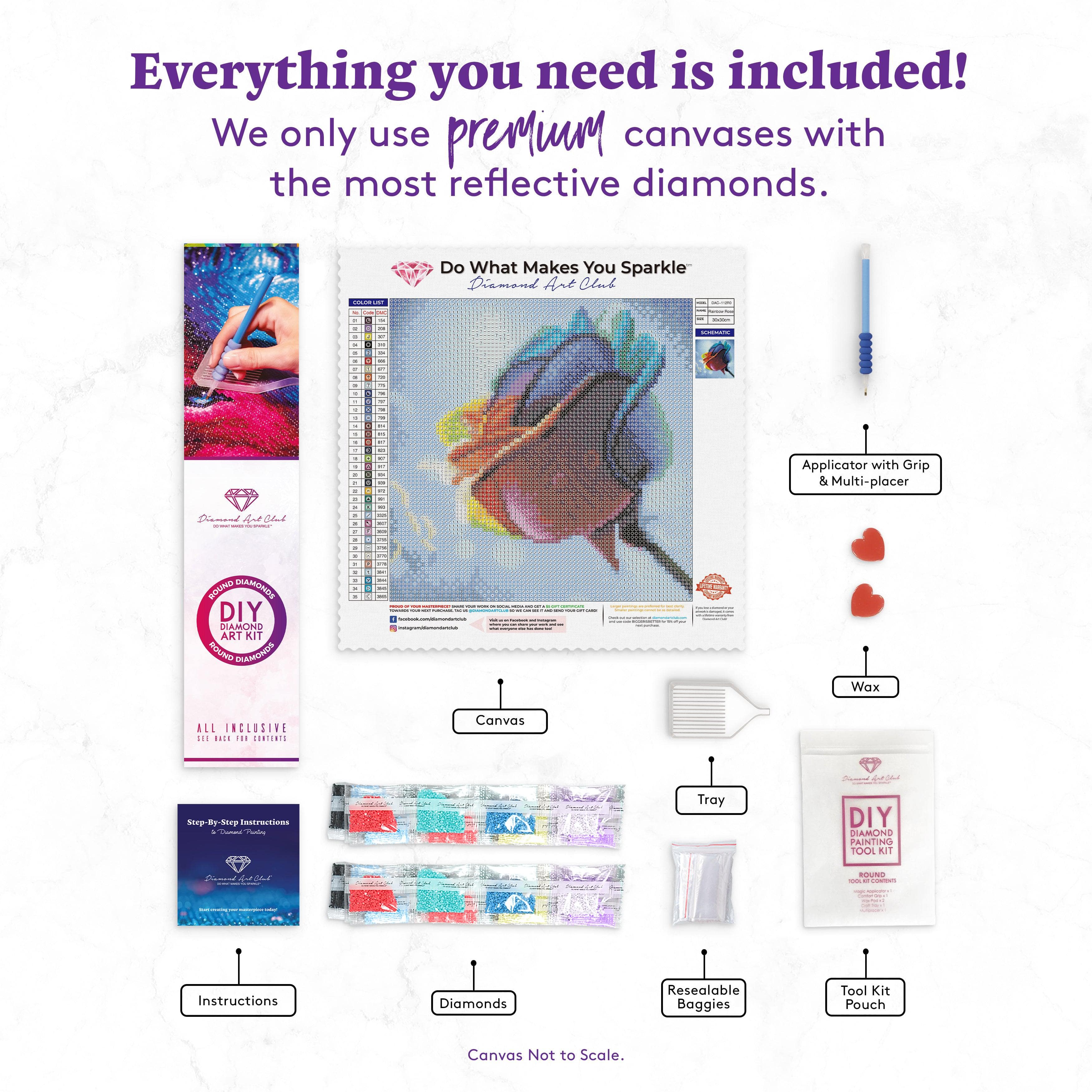 Canvas x 1, Diamonds, Tray x 1, Applicator + Grip x 1, Wax x 2
