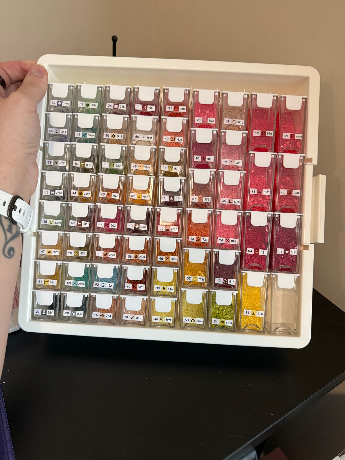 OK, I don’t say this lightly but the 54-container Diamond Storage Organizer from Diamond Art Club is a total game changer. You know that feeling when everything in your craft space just flows? That’s what this did for me. The quality is next level. The case feels sturdy and premium, not flimsy. The container seal tight no spills, but they’re still easy to open when I’m working. And the different container sizes? Genius. No more wasting space or cramming drills where they don’t belong . Kitting up now feels organized, clean and honestly….. elevated. It makes the whole experience feel more professional and luxurious. If you love diamond painting and appreciate high-quality tools, this isn’t just nice to have. It’s the kind of upgrade that makes you wonder why you waited. Diamond Art Club truly understands their community. Every detail feels intentional, and it shows. If you’ve been on the fence, consider this your sign.