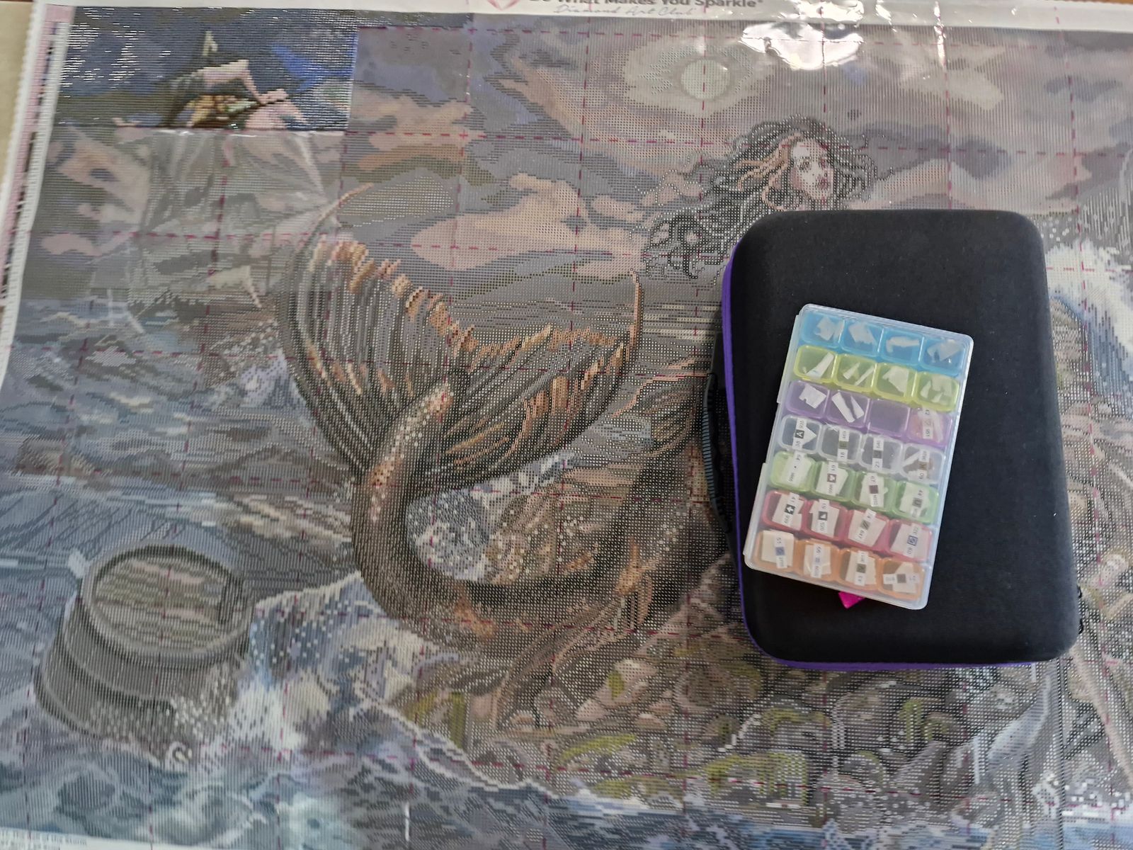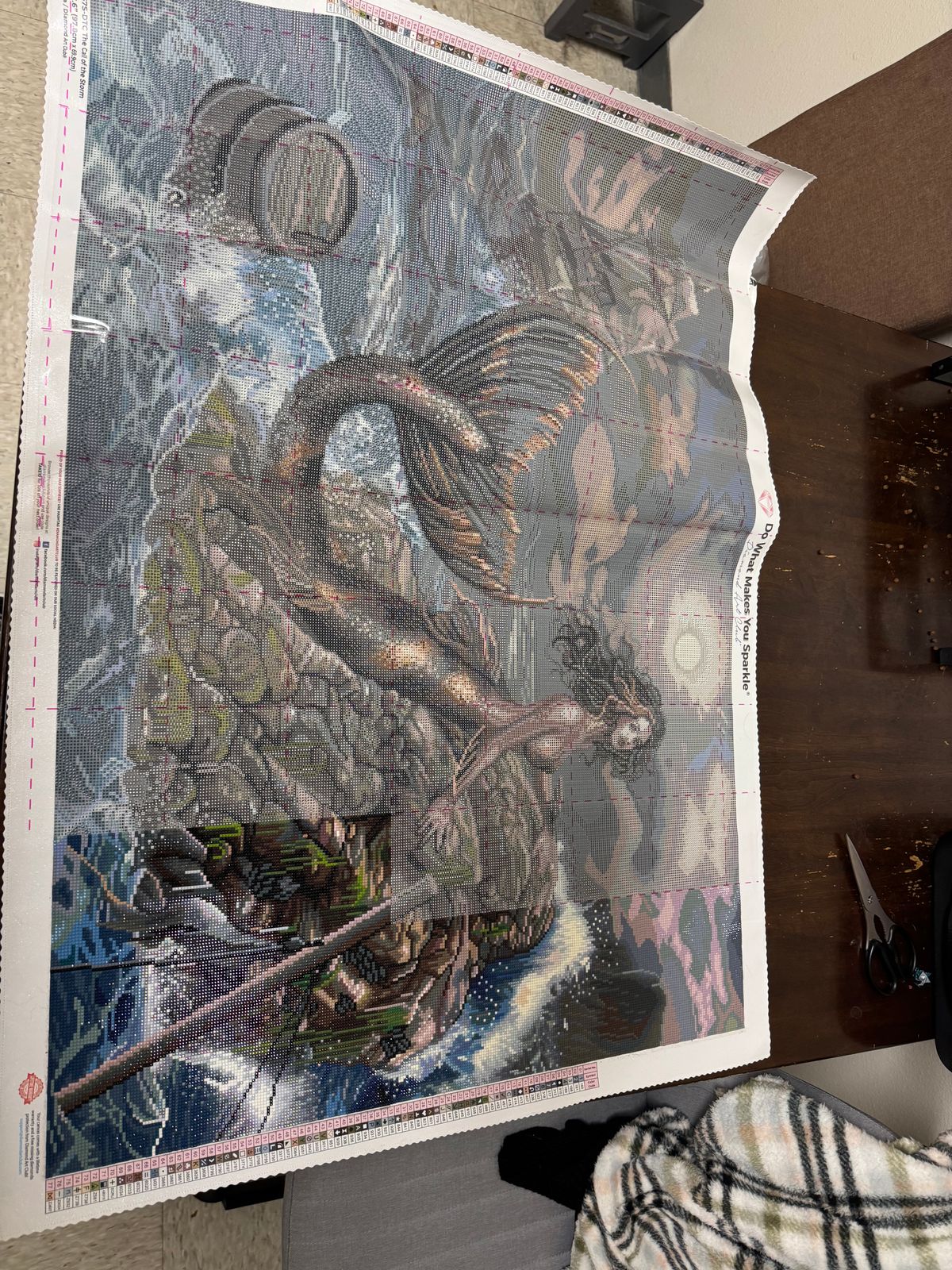The Call of the Storm is absolutely gorgeous and one of my favorite Diamond Art Club kits so far. It’s the perfect moody mermaid scene—dark, dramatic, and totally mesmerizing. The mermaid is in the middle of these wild, choppy waters, and you can just feel the energy in the whole painting.