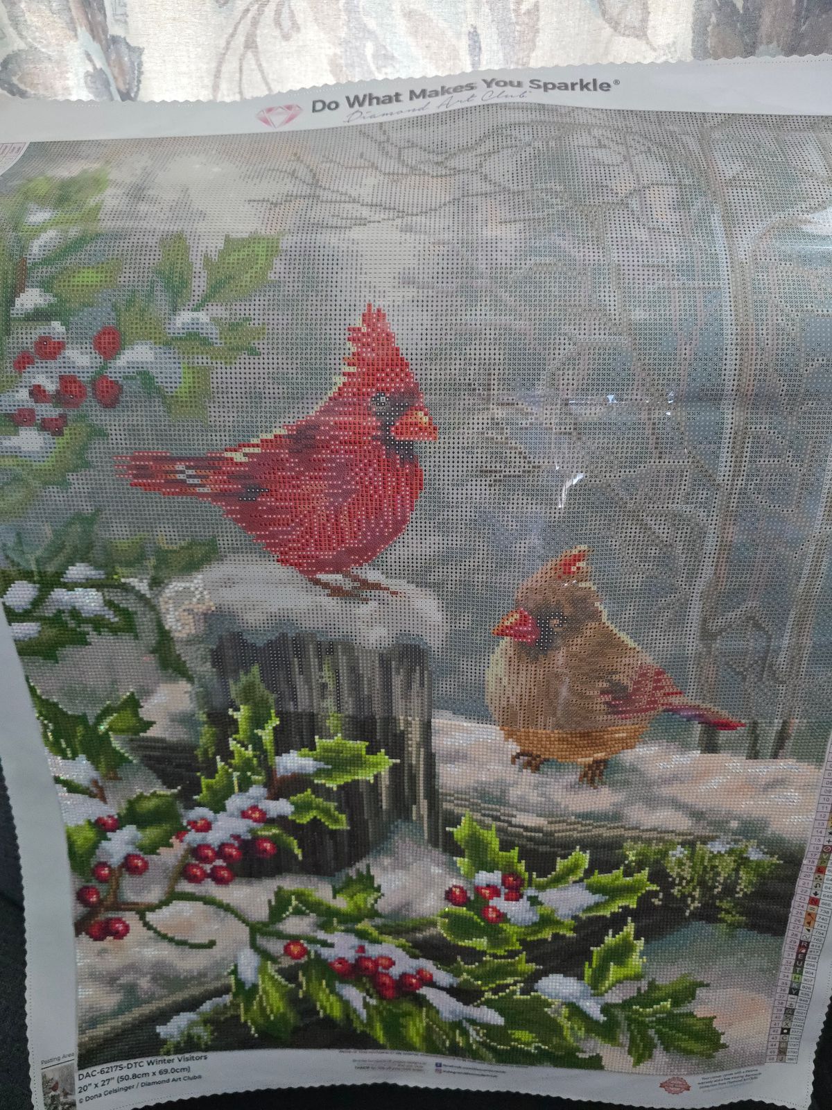 This is currently my WIP. I am half way and the female Cardinal is beautifully detailed. I will update the photo as I finish.