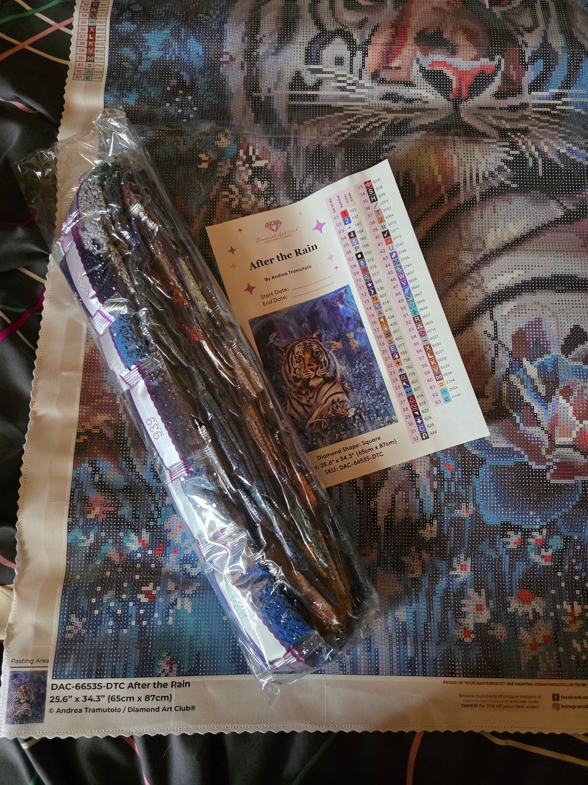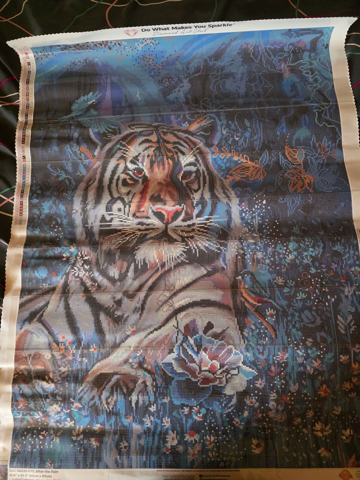 I'm so in love with this Tiger After the Rain. I come home from work and work on this. I consider this my wind down from work. So glad a friend told me about Diamond Art Club. Best purchase I've done in a long time.