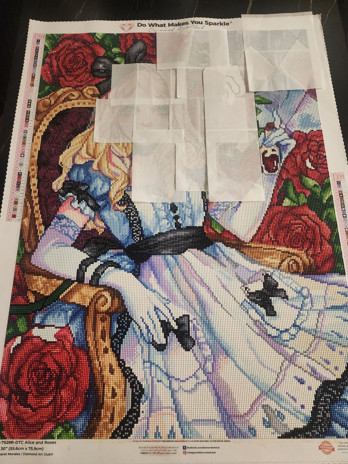 I couldn t resist buying an Alice themed kit by so much appreciated Margaret Morales. Although it is a kit with round diamonds and I have no experience in doing rounds, I cannot wait to start this one.