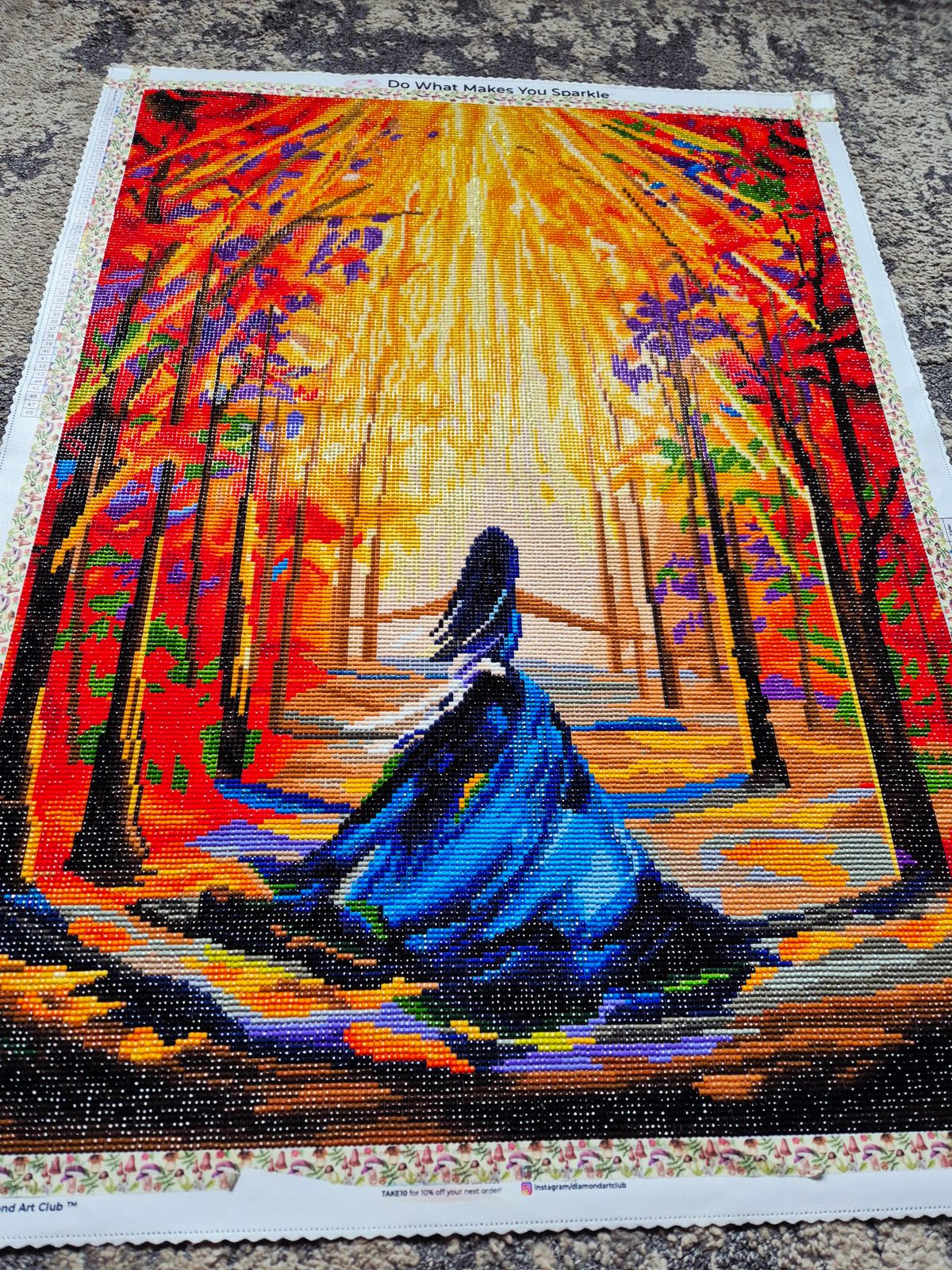 This canvas was such a joy to diamond paint. It sparkles just like the light that shines down through the trees and onto the walking path. It is my favorite fall canvas that I’ve done so far . I enjoyed it so much.