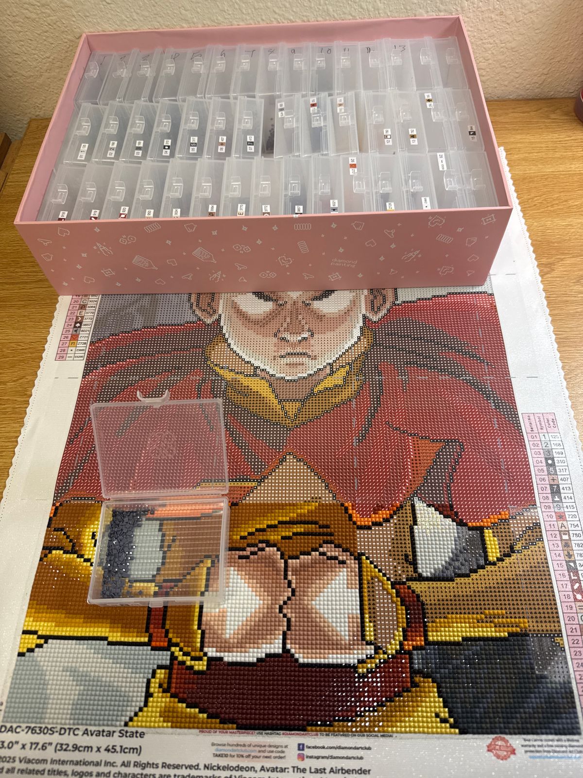 Got this one because I started diamond painting after the Aang, katara, and sokka kit had already discontinued. The quality is fantastic, grid was perfect, the baby tray was a little too small of a spout to dump into storage but it wasn’t too bad, just a few stuck gems. Loved doing as my second kit