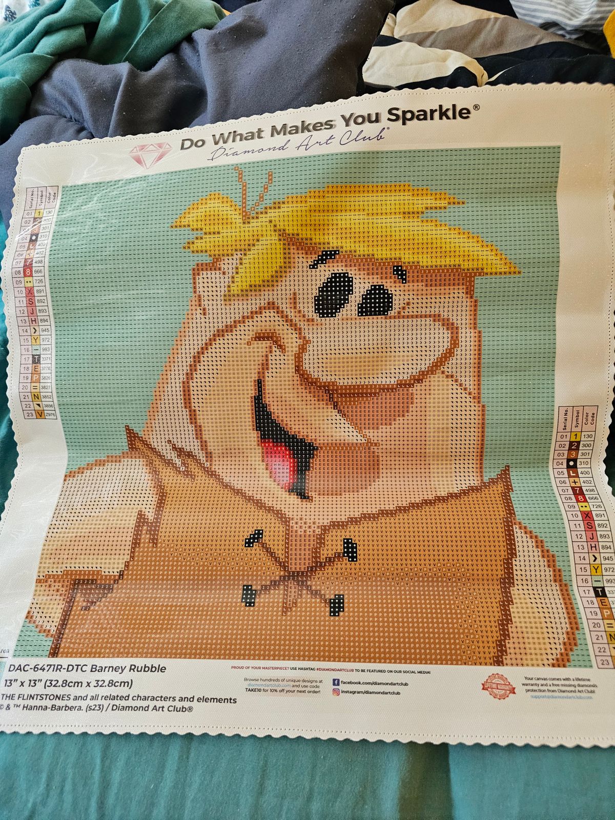 I love The Flintstones and I loved doing this little diamond painting. I liked the color blocking and I loved the colors.