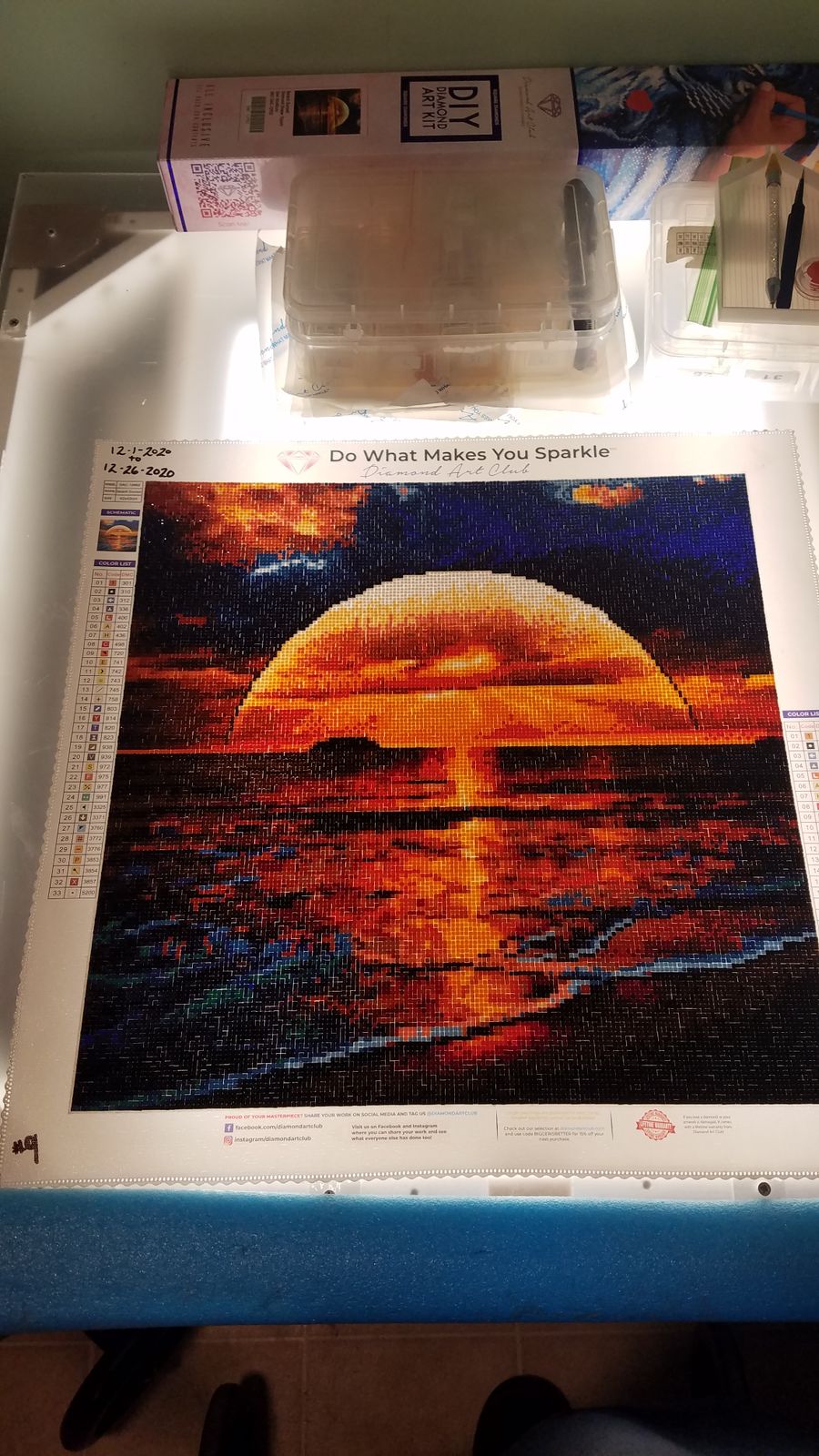 I’m currently working on this picture called BEACH SUNSET. When i purchased it in November 2019 i fell in love with the picture. When it arrived and i looked at the colors of the drills, i thought to myself, this is going to be a very dark picture so i set it aside and work on others. A friend of mine told me she wanted this one when i told her to pick one out for me to do for her. So i started on it and i have to tell you, this is going to be one GORGEOUS picture. If you have this in your stash I recommend you pull it out and do it, you will not b e disappointed ❤️💎👩‍🎨
