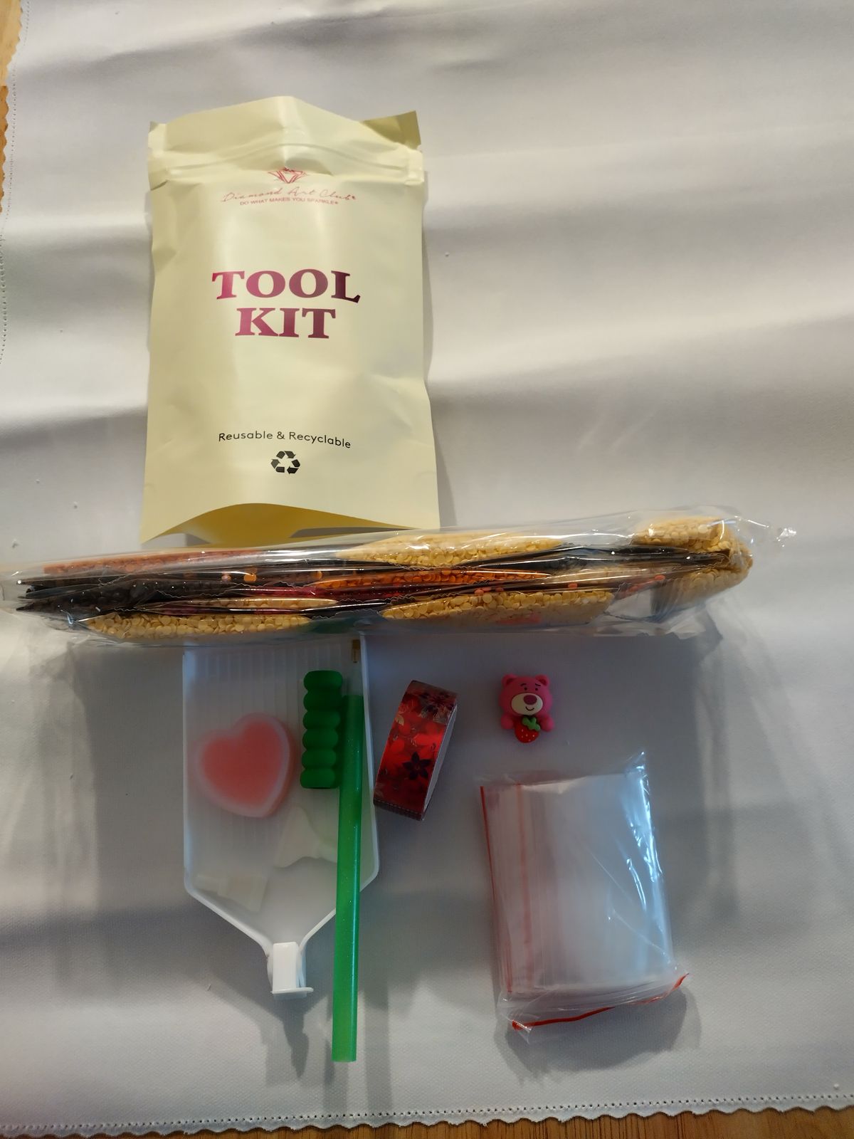 Canvas x 1, Diamonds, Tray x 1, Applicator + Grip x 1, Wax x 2