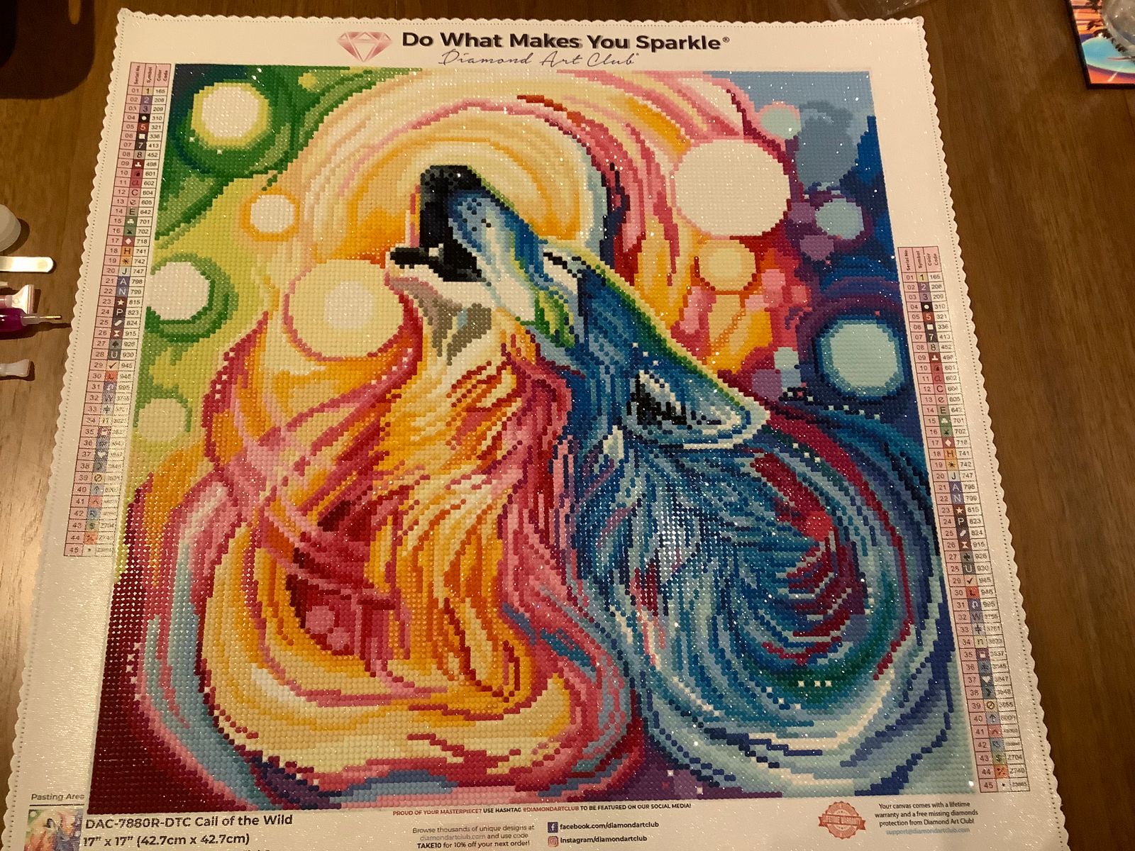 Absolutely beautiful diamond painting, goes along nicely with nuzzling wolves by the same artist. This was my fastest finish ever and I enjoyed every second of working on it.
