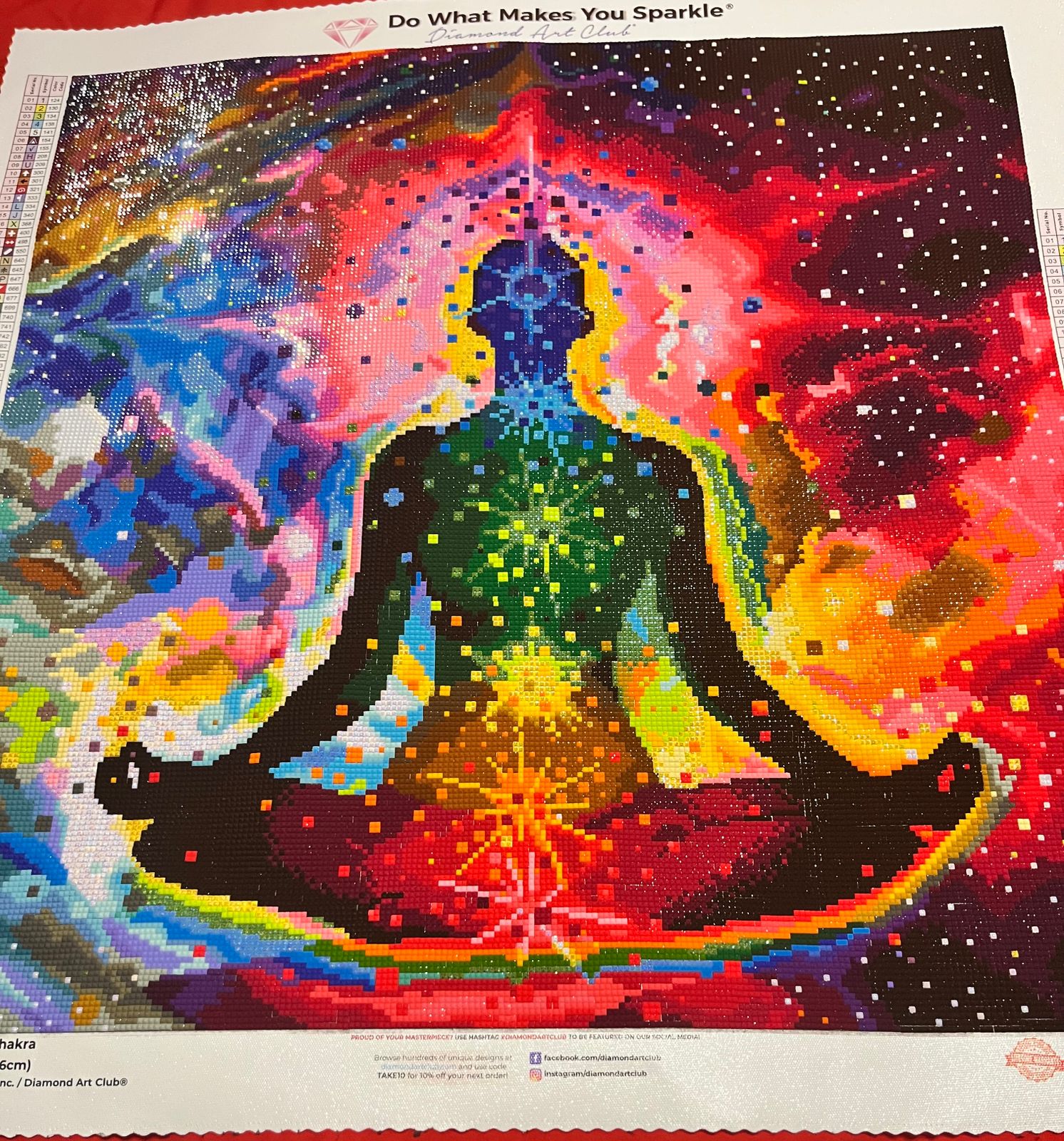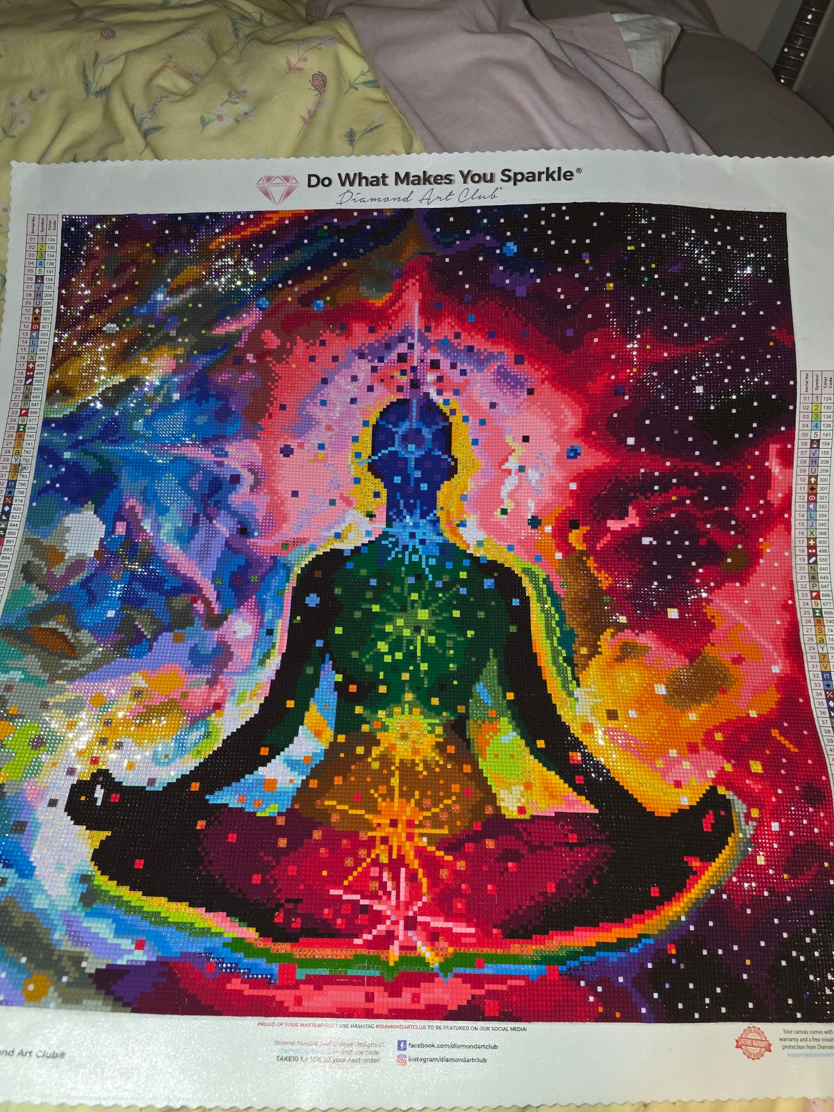 How can a canvas both excite me and calm me at the same time? Not sure but Chakra did. As a person who enjoys yoga and meditation, I knew I had to have this one. The colors are so vibrant and I loved all the confetti. Truly amazing.