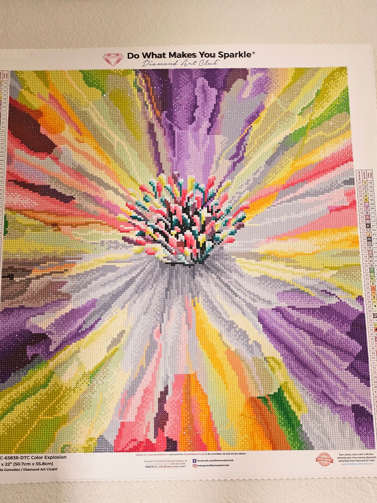 Color Explosion" from Diamond Art Club is simply stunning! The canvas and drills are top-notch quality, as always with DAC. The vibrant colors and dynamic design truly pop, making for an incredibly satisfying and beautiful finished piece. A fantastic project – highly recommend!