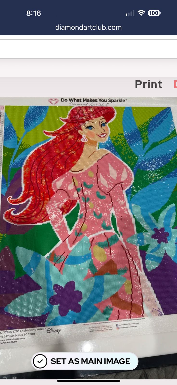 I purchased this canvas as a gift for a friend. We both recently got into diamond painting, and I saw this and had to get it for her. Her favorite character is Ariel.