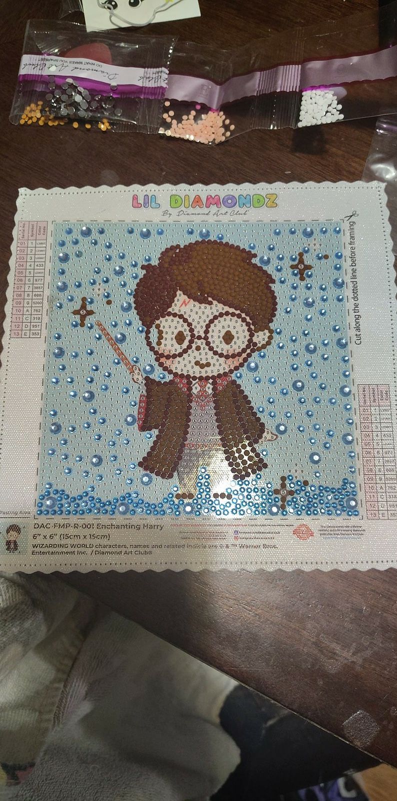 I got this kit as a huge harry potter fan to do in between working on my bigger kits. I really like the picture however I had to rate it 3 stars due to missing alot of diamonds as other reviewers said. In my case i was short about half the amount needed of one of the browns. Luckily i had spares from other DAC and non DAC kits of this number to make it work . Others may not be so lucky so please fix how you count or weigh the bags for this kit .