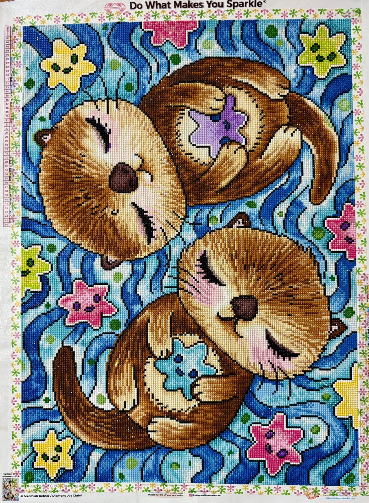 My grand-niece asked me to complete this canvas for her room. She LOVES it. The fur on the otters is rendered perfectly, it looks fuzzy! What a happy design.