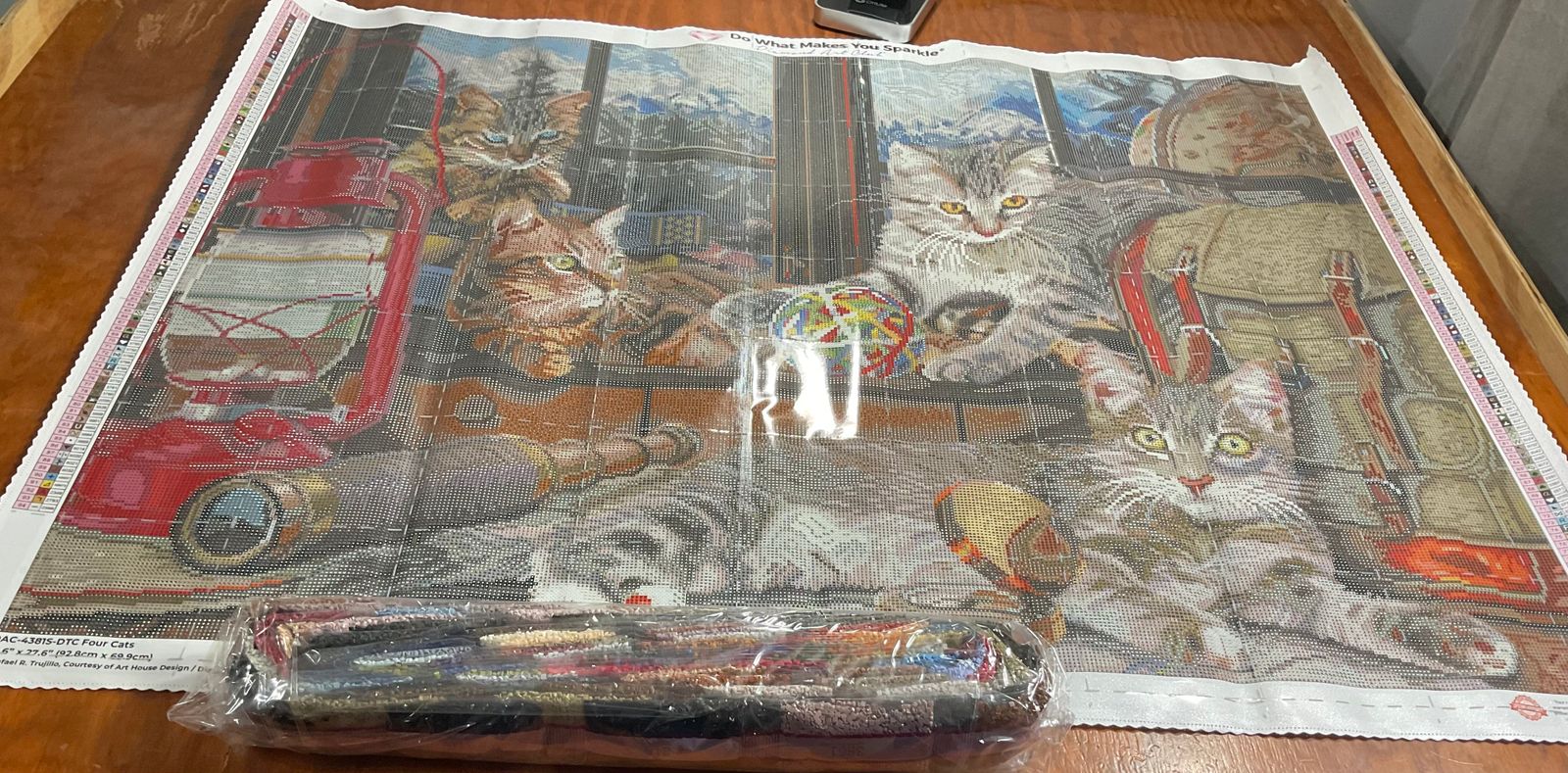 My husband picked this for his first ever diamond painting to do. I am so glad he is joining me in this hobby. He has guts, picking a square, big painting. But I think his drill placement will be better than mine, lol. This kit is so cute, very realistic looking cats.
