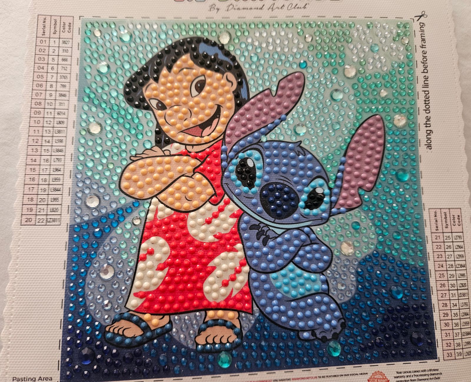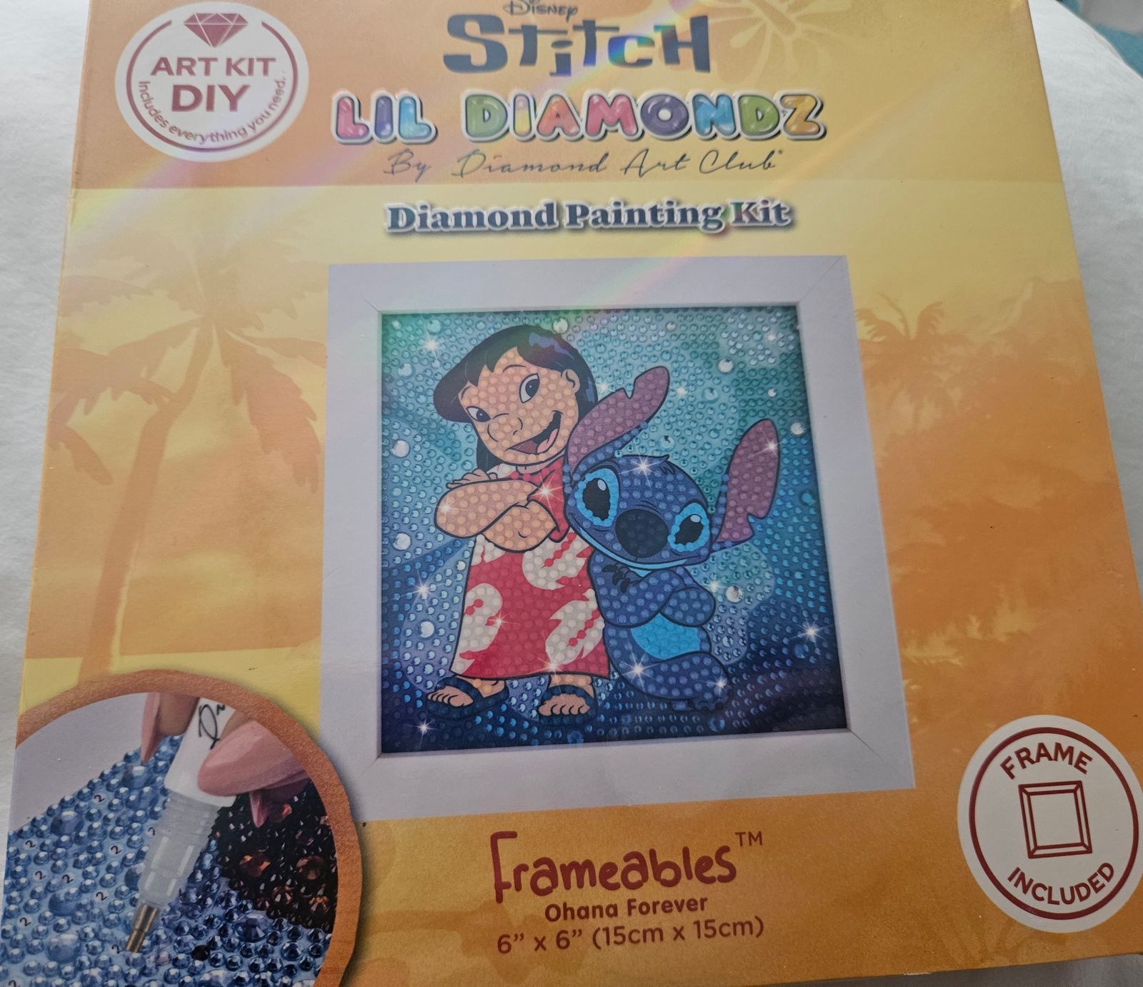 I have been wanting to try a DA kit and found this one. Even though it is for kids, it is a great beginner kit for adults. It does require a bit of time to get organized before starting but once you have all your supplies laid out, it is very easy. You need good lighting to see all the numbers but with time and patience you get a cute and pretty finished product. Plus, I love Stitch!