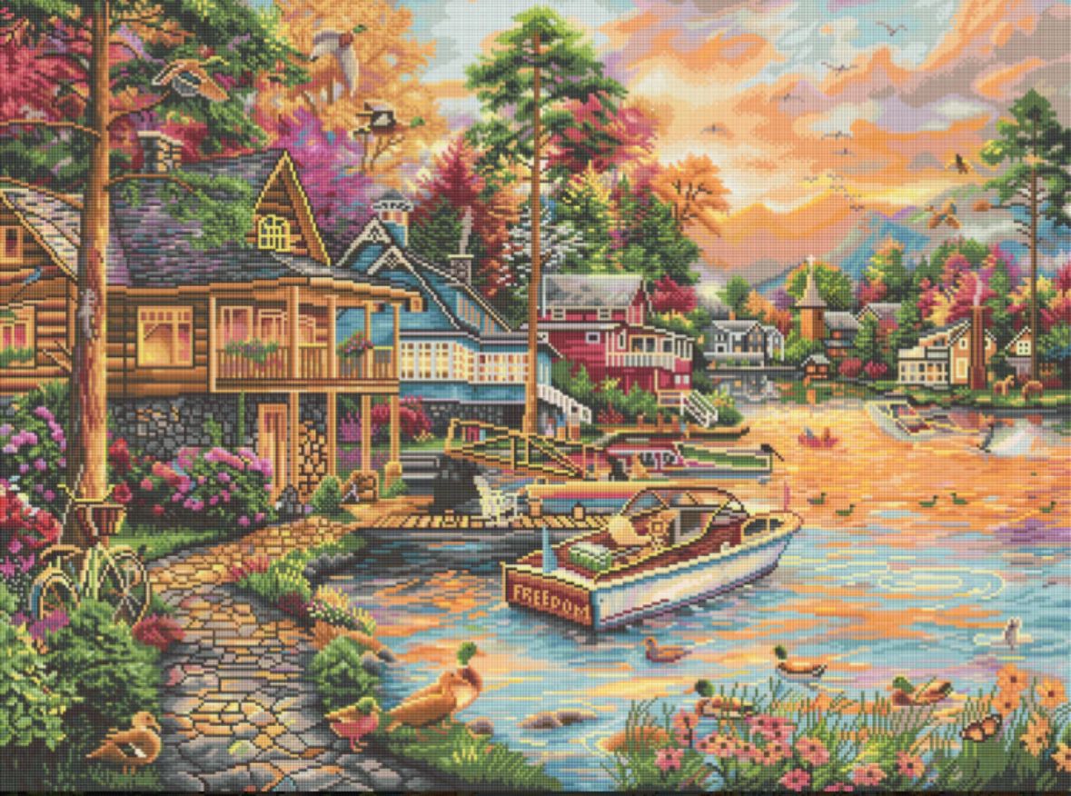 Beautiful rendering of Chuck Pinson’s “Freedom At The Lake”! Easy to do and everything you need to complete this is included. This company is the Best Diamond Painting Company there is!