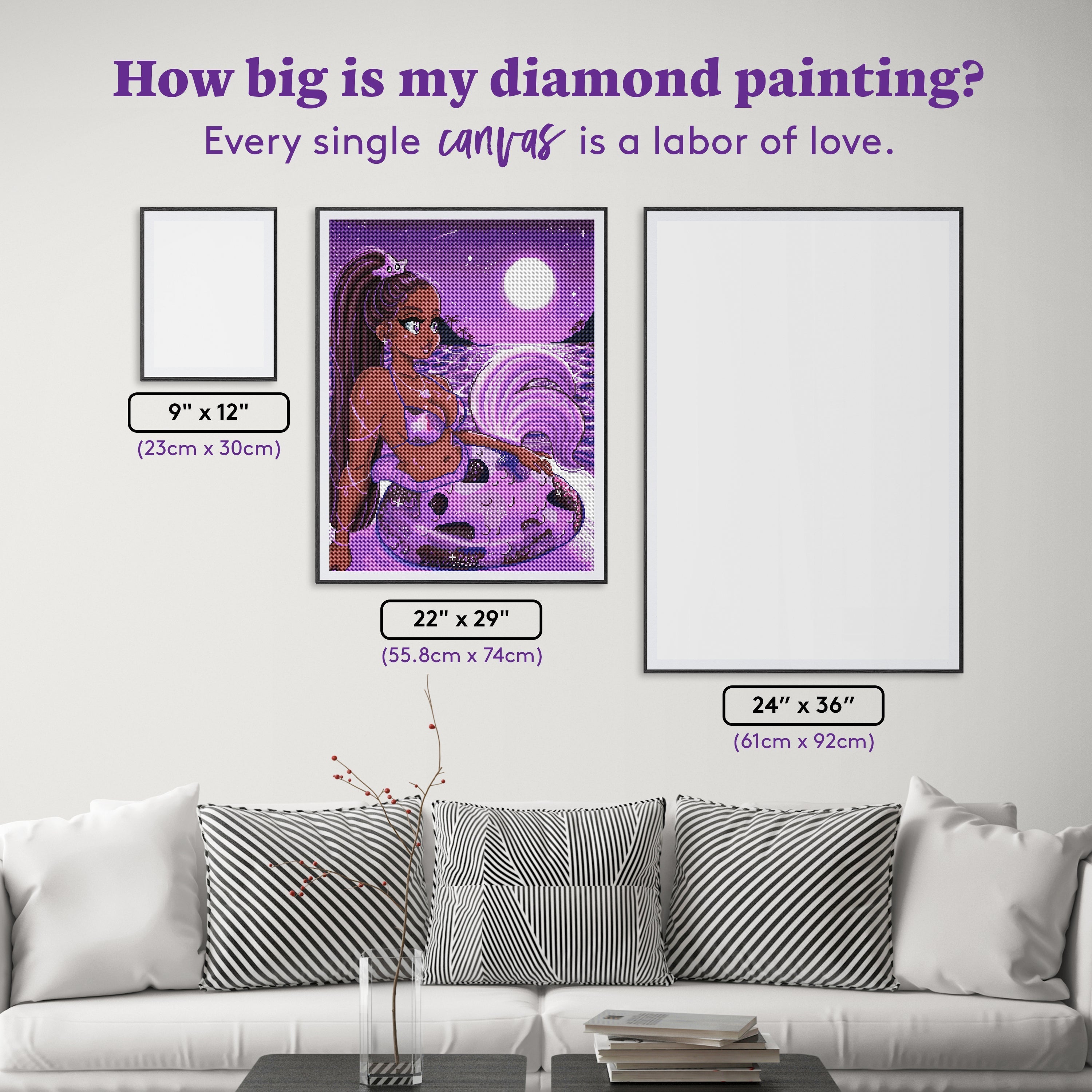 If you love purples this is your painting. It's on the bigger side but worth it in the end. I did have to request replacements because of a color issue. But it was resolved quickly.