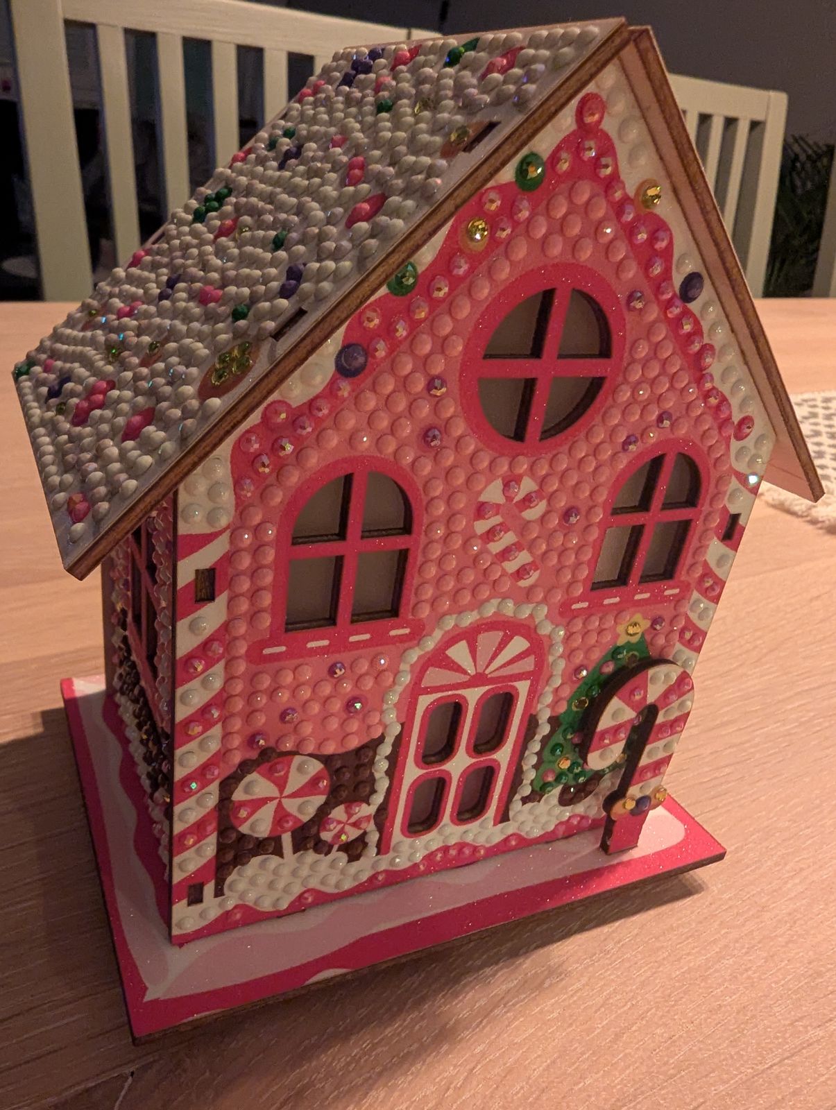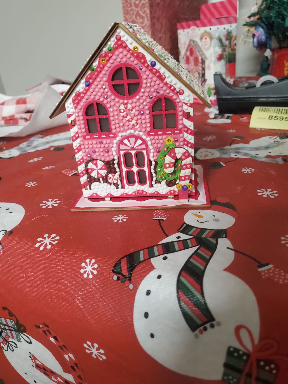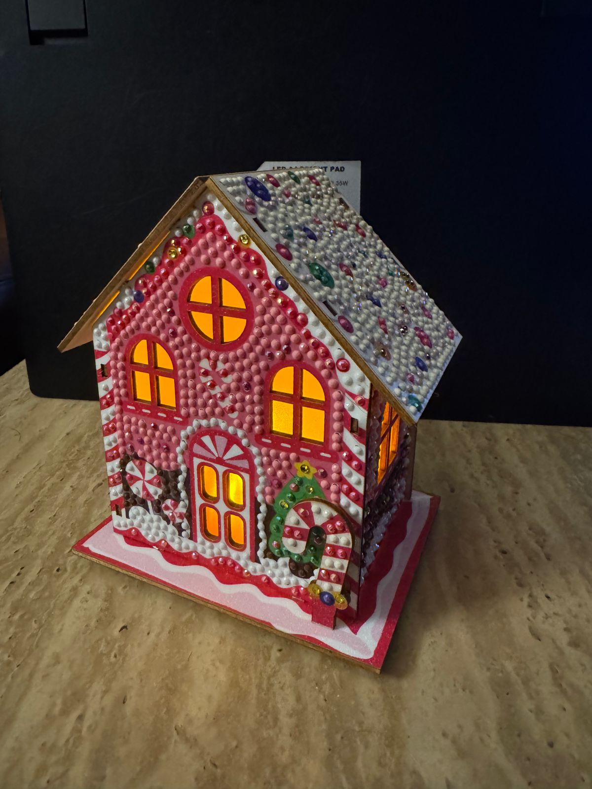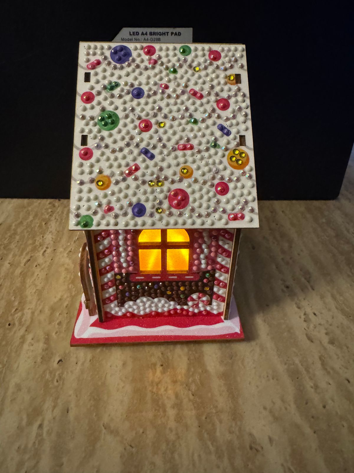 I was eyeing this gem house for a while and this was my first gem house kit. I enjoyed doing it and it was a quick project. The only trouble I had was putting it together once I finished putting the drills on it. I managed to get the house together, but I had a lot of trouble trying to get it to attach to the base.