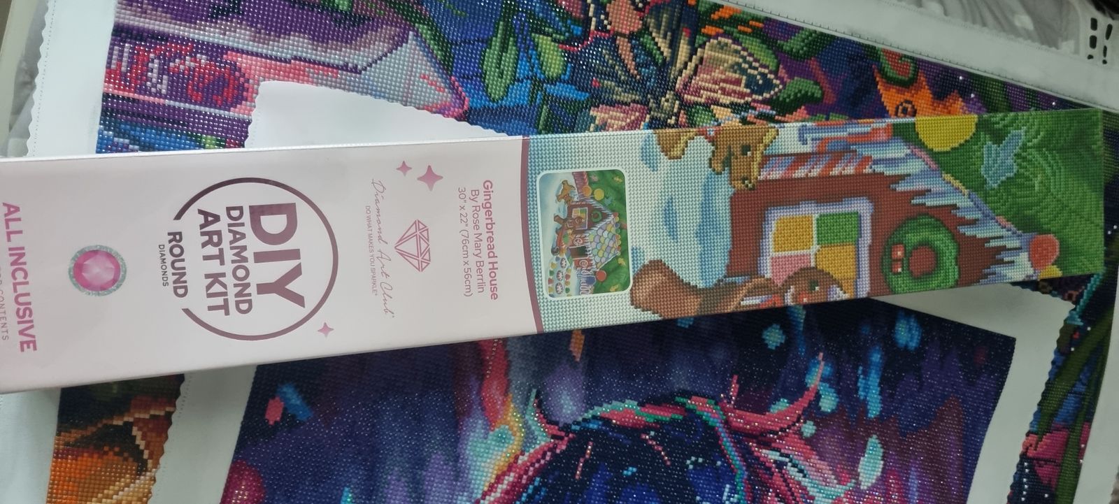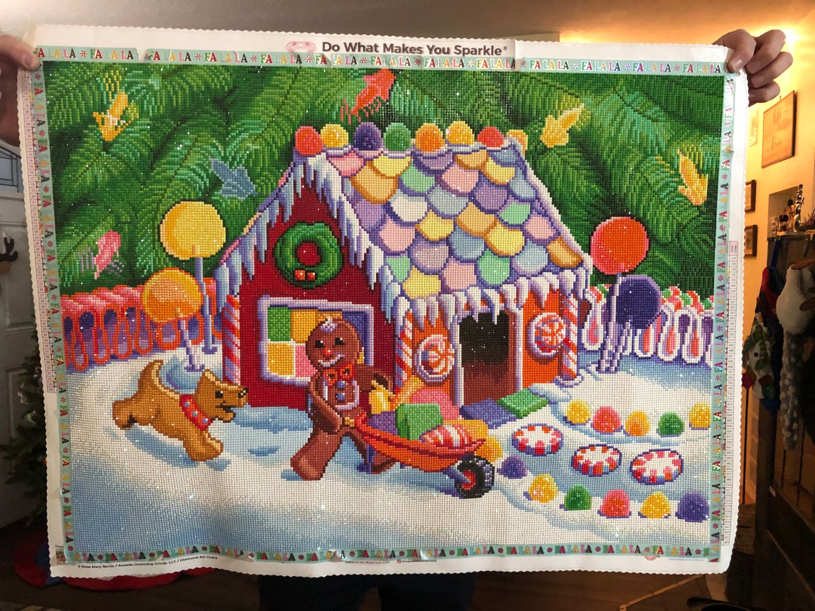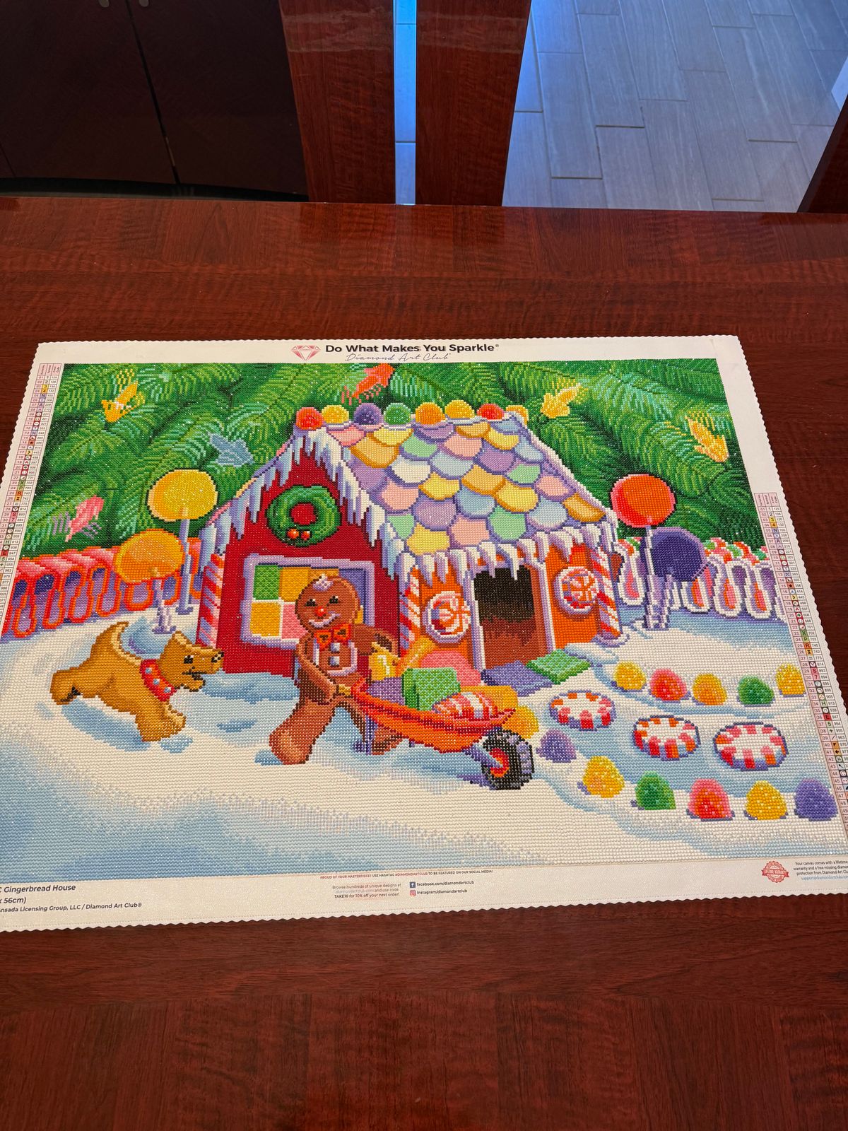 This is my first diamond painting, n I couldn’t picked a better one.. it is so pretty n colorful.. n I love decorating with gingerbread houses❤️❤️
