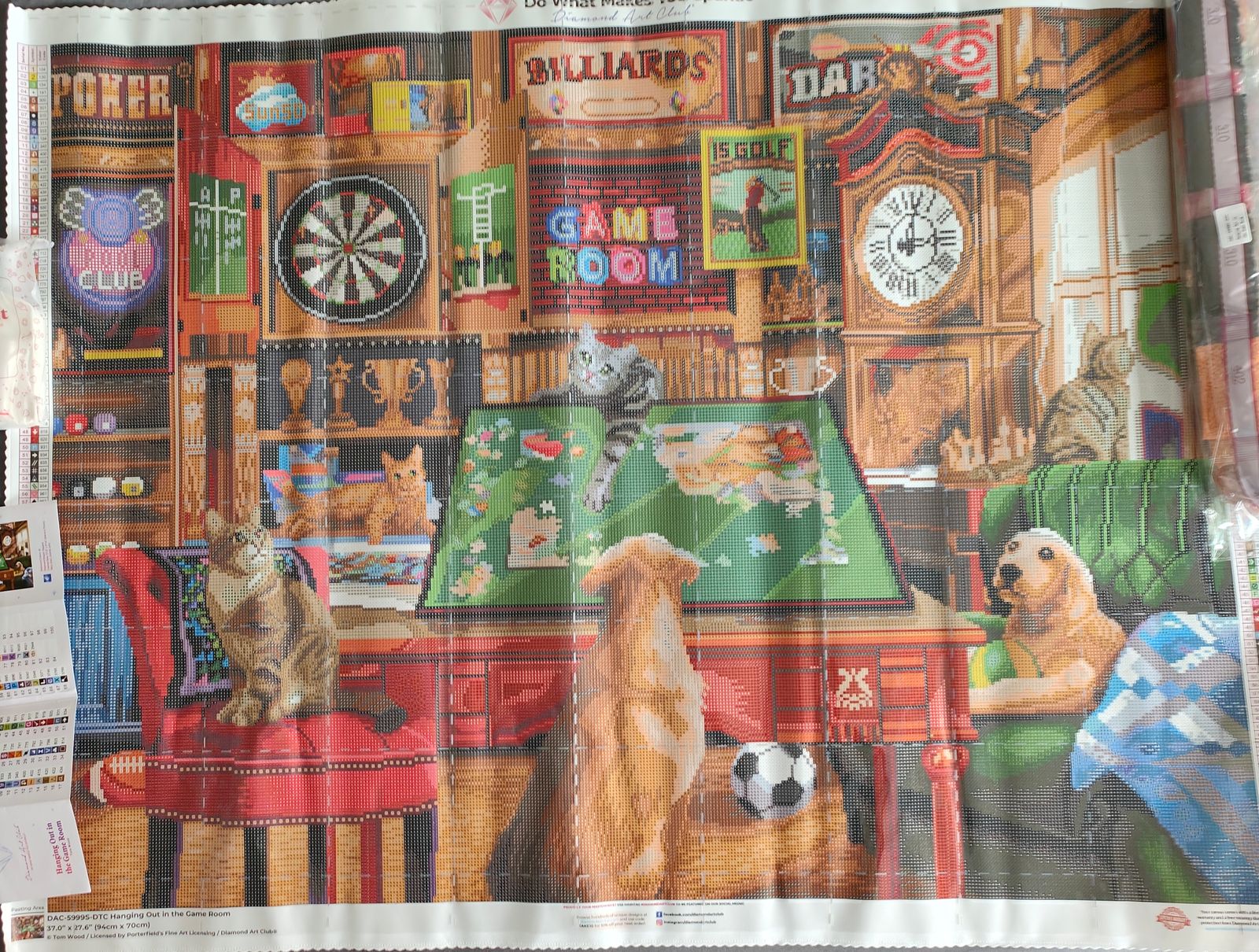 I love a DP like this - something everywhere and anywhere you work. From the pets to the afghans to the game boards to the signs on the wall (those are my very favorite) - fun, fun, fun. Also love how the beams of light are coming in the window. Such a fun time, and such a beautiful finish.