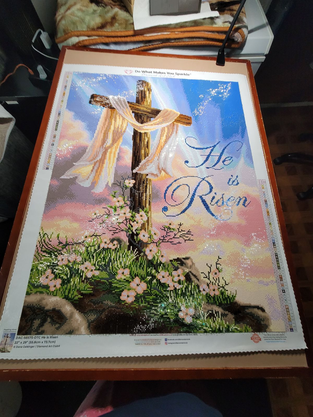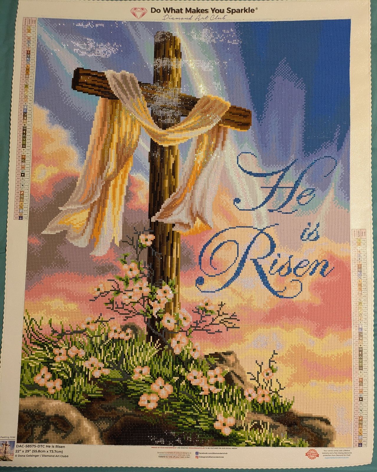 This piece was an absolute joy to complete! The wooden cross looks beautifully authentic, and Dona Gelsinger’s artistry truly shines through every detail. I’m so grateful to Diamond Art Club for offering such a stunning design.