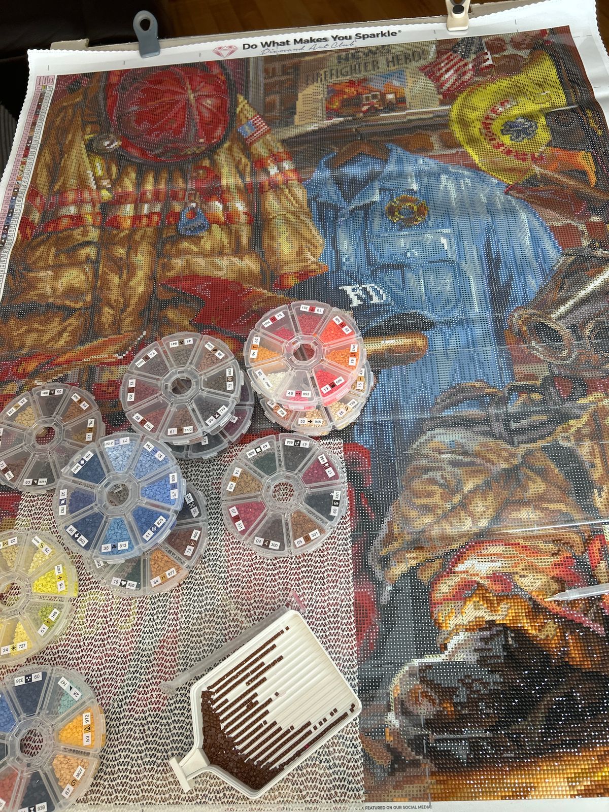 Love this piece for my husband who is a fire fighter. I love paintings that are meaningful. This is one is fun and challenging with the perfect sparkle i love.