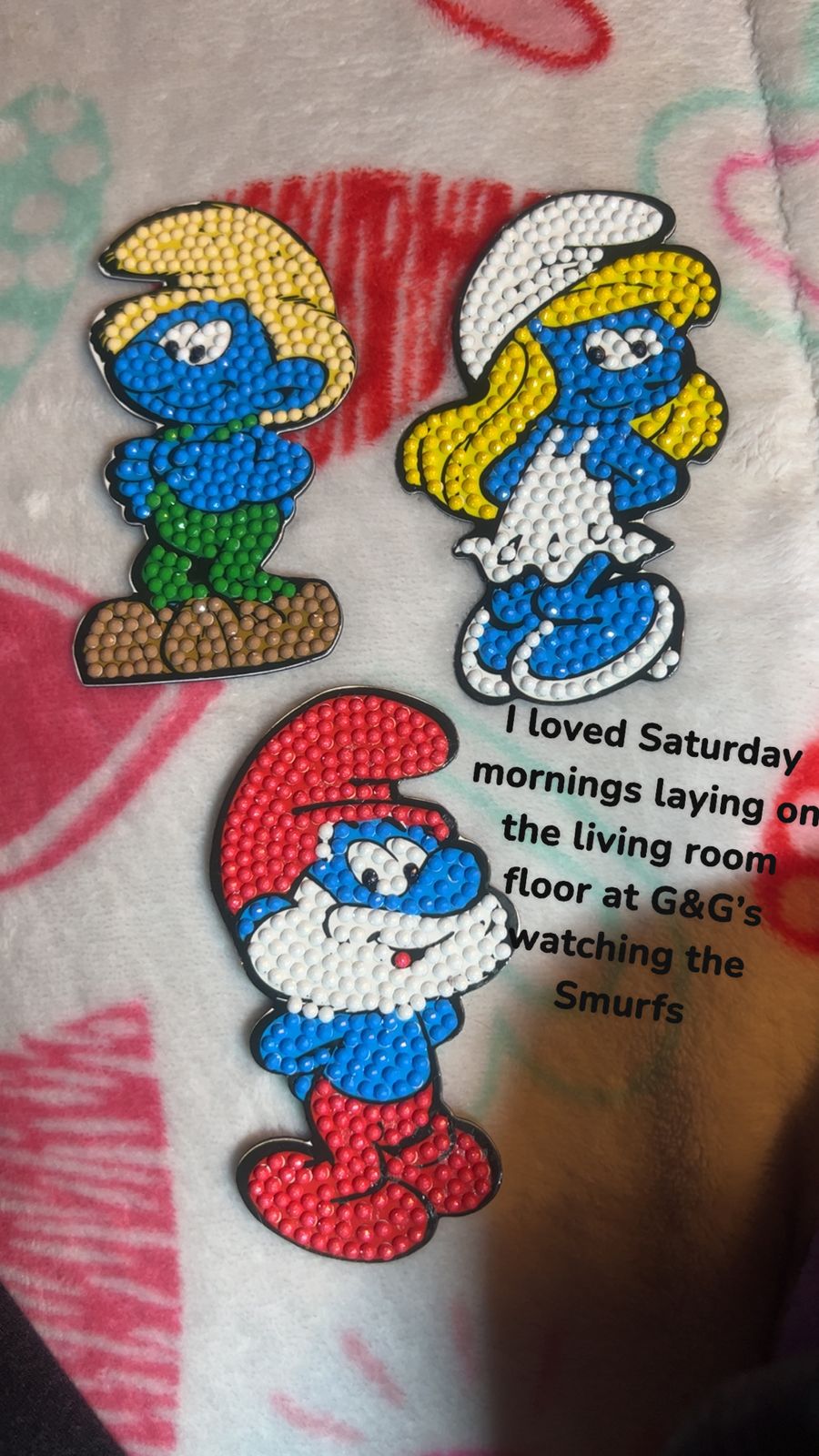 How fun are these little blue Smurfs!?!? Many memories for me from childhood. Came out super cute! Going to put them on my locker at work.