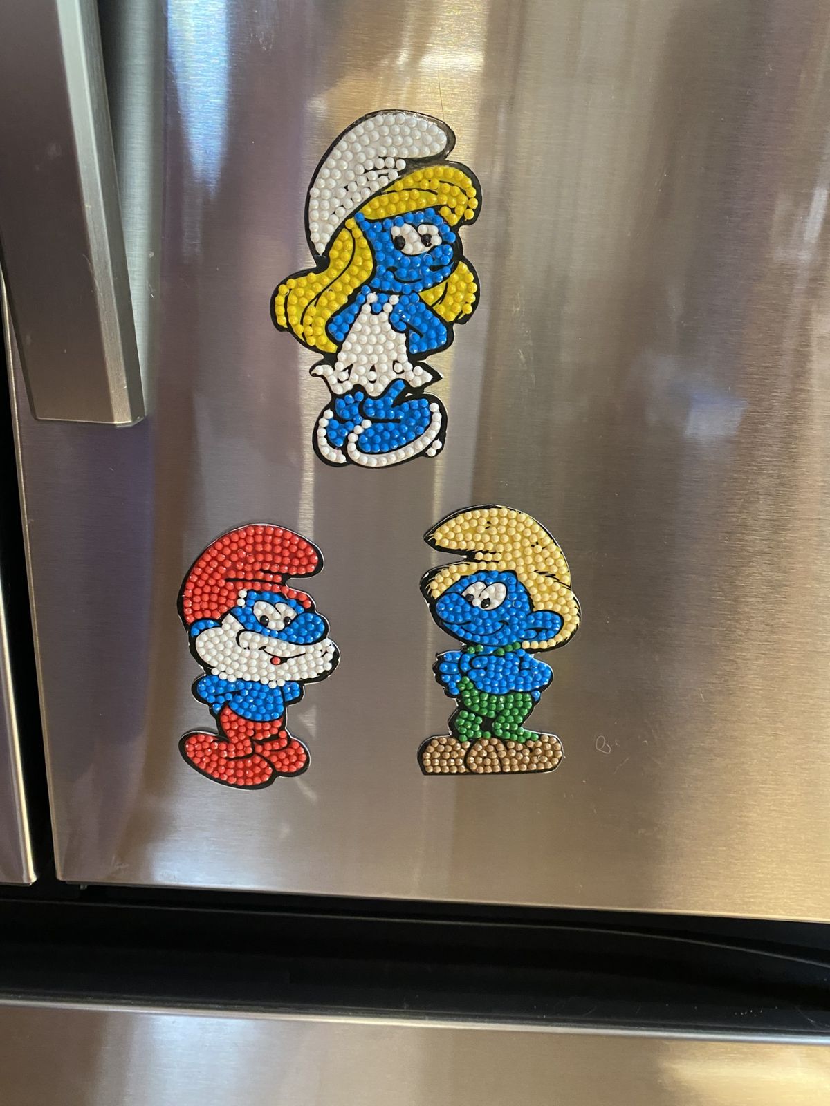 Embrace the magic of friendship and adventure with these tiny but mighty icons of fun! Emblazon each magnet with diamond art drills and post them on metallic surfaces to add Smurfy charm!
