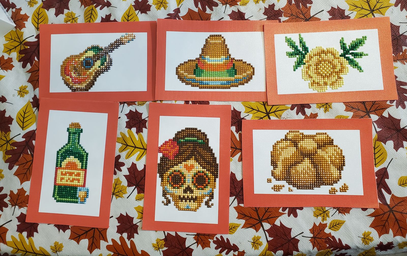 These were so much fun to work on. I love the skull lady, she is beautiful. canvases are the same soft luxe material as the big canvases and the drills were perfect!