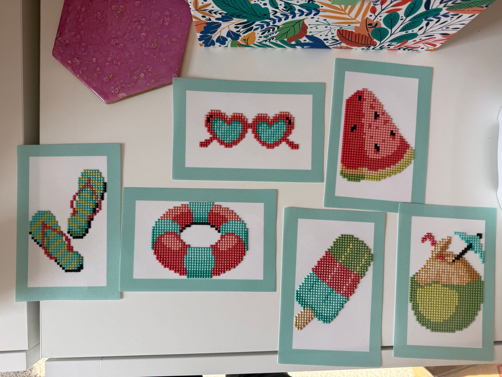 Super cute set! This was my first mini dazzle set that made me want to go and immediately buy multiple more sets! So easy and fun! Great way to unwind each night and a nice way to have some finishes while working on big projects!