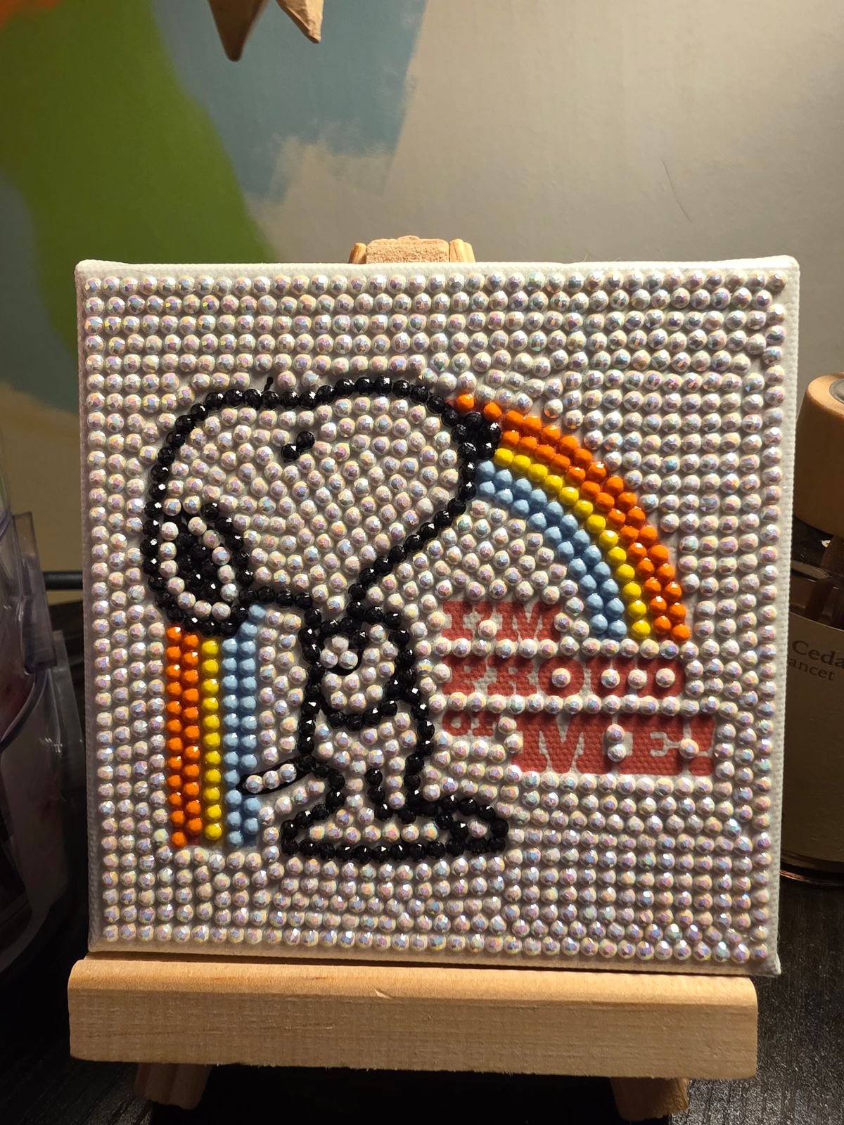 So cute! Got my partner this cutie and myself the powerpuff girls, and we made a date day of it. The perfect activity to do together. And now he sits on my partner’s desk :-) The gems are so shiny, the kit had everything I needed, and I love how it turned out!