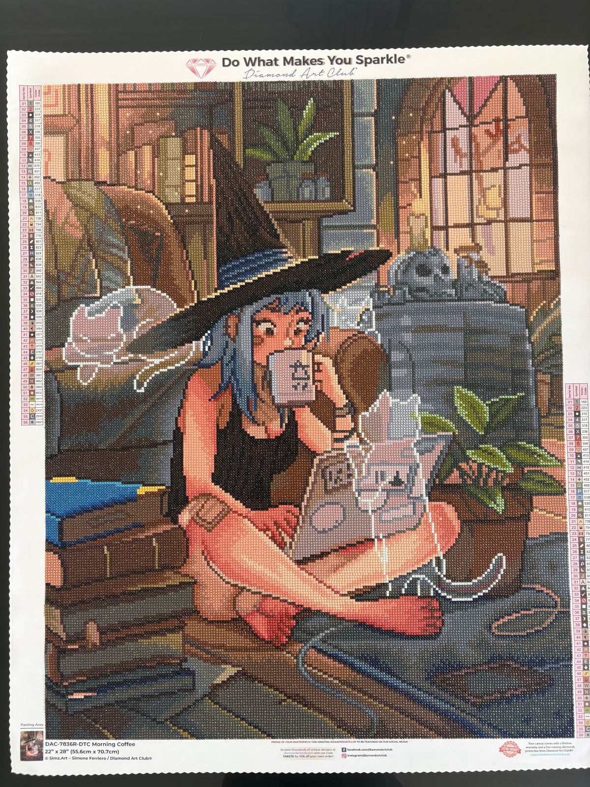 You know you are a Dac Addict when you aren't a coffee drinker but find yourself buying this gem! 😅 "Morning Coffee" was so enjoyable to work on. The sparkle on this canvas from the amazing round drills is spectacular. Everything was perfect from the canvas, perforated cover sheet to the symbol clarity. Thank you Diamond Art Club for another amazing dp'ing experience.
