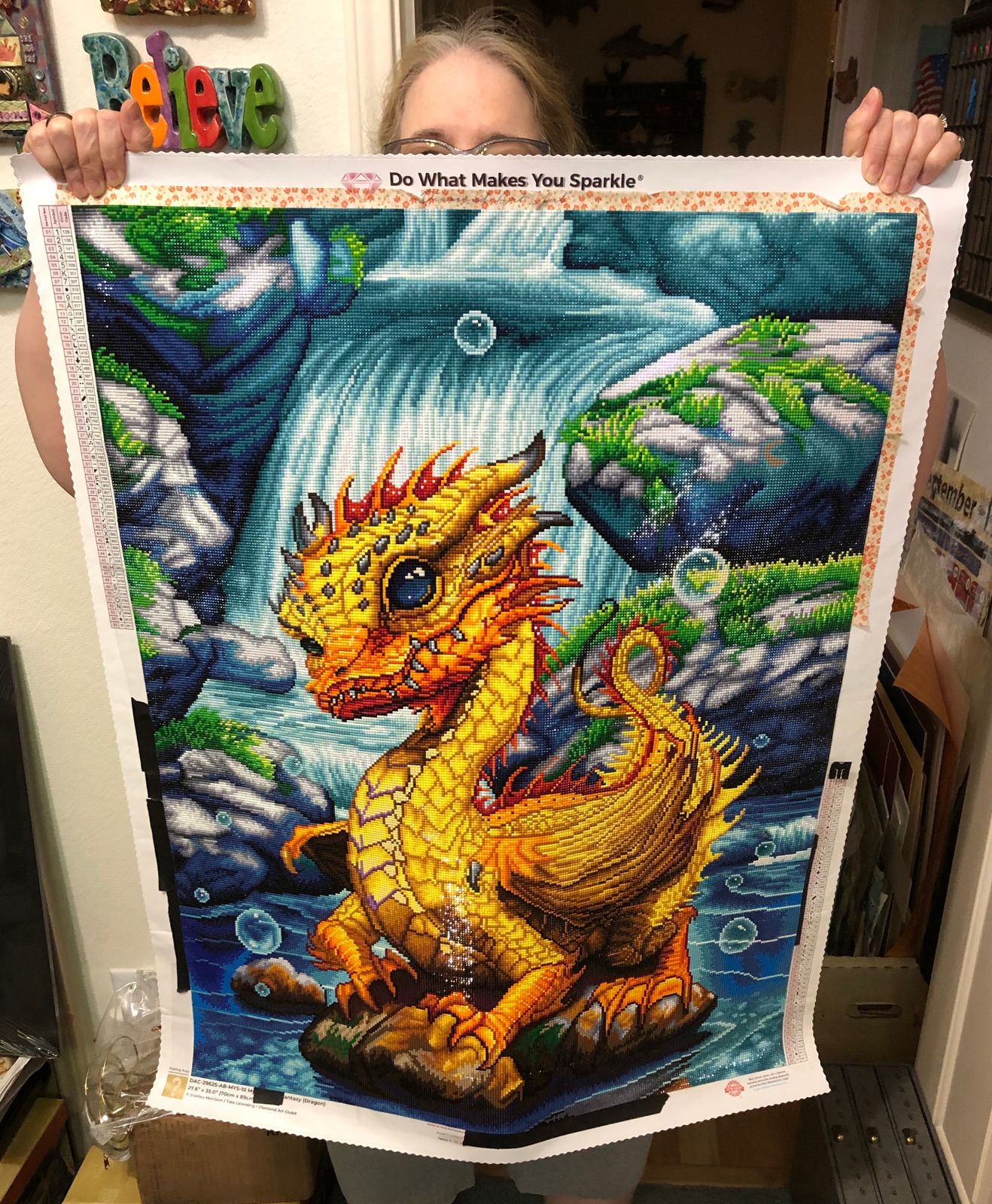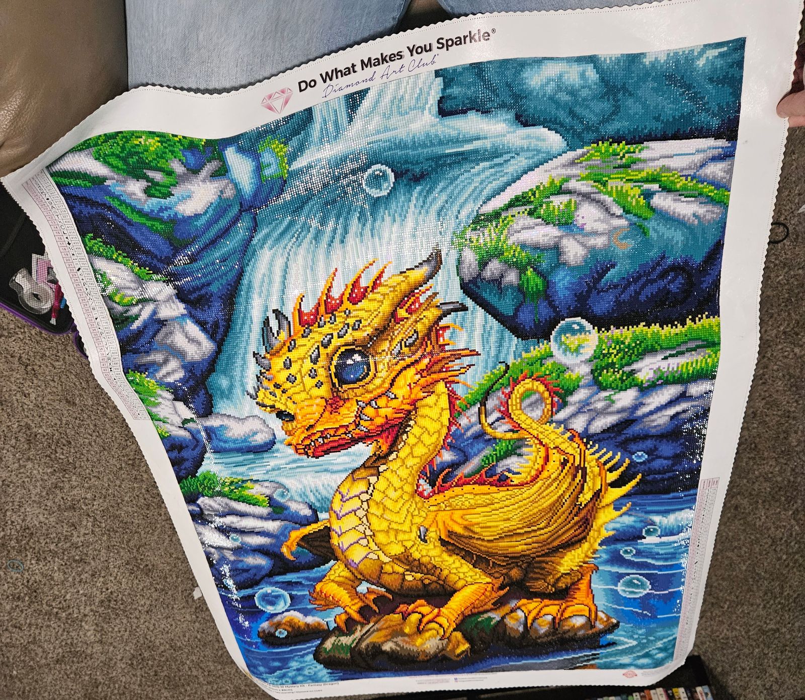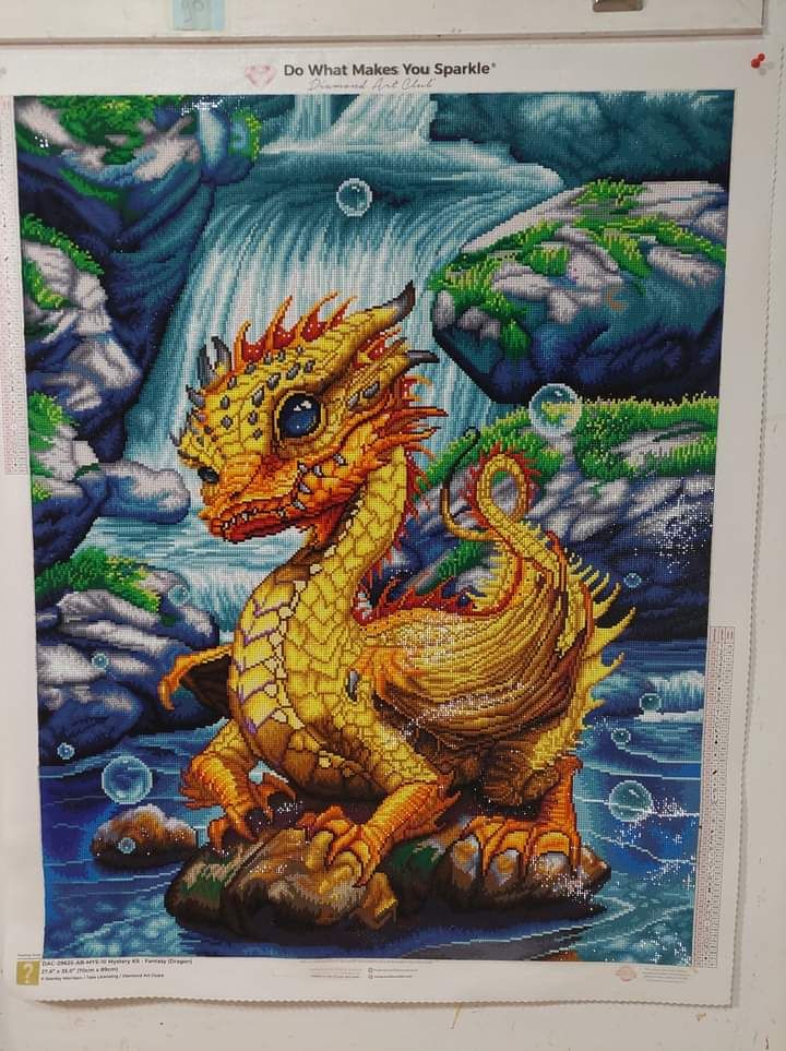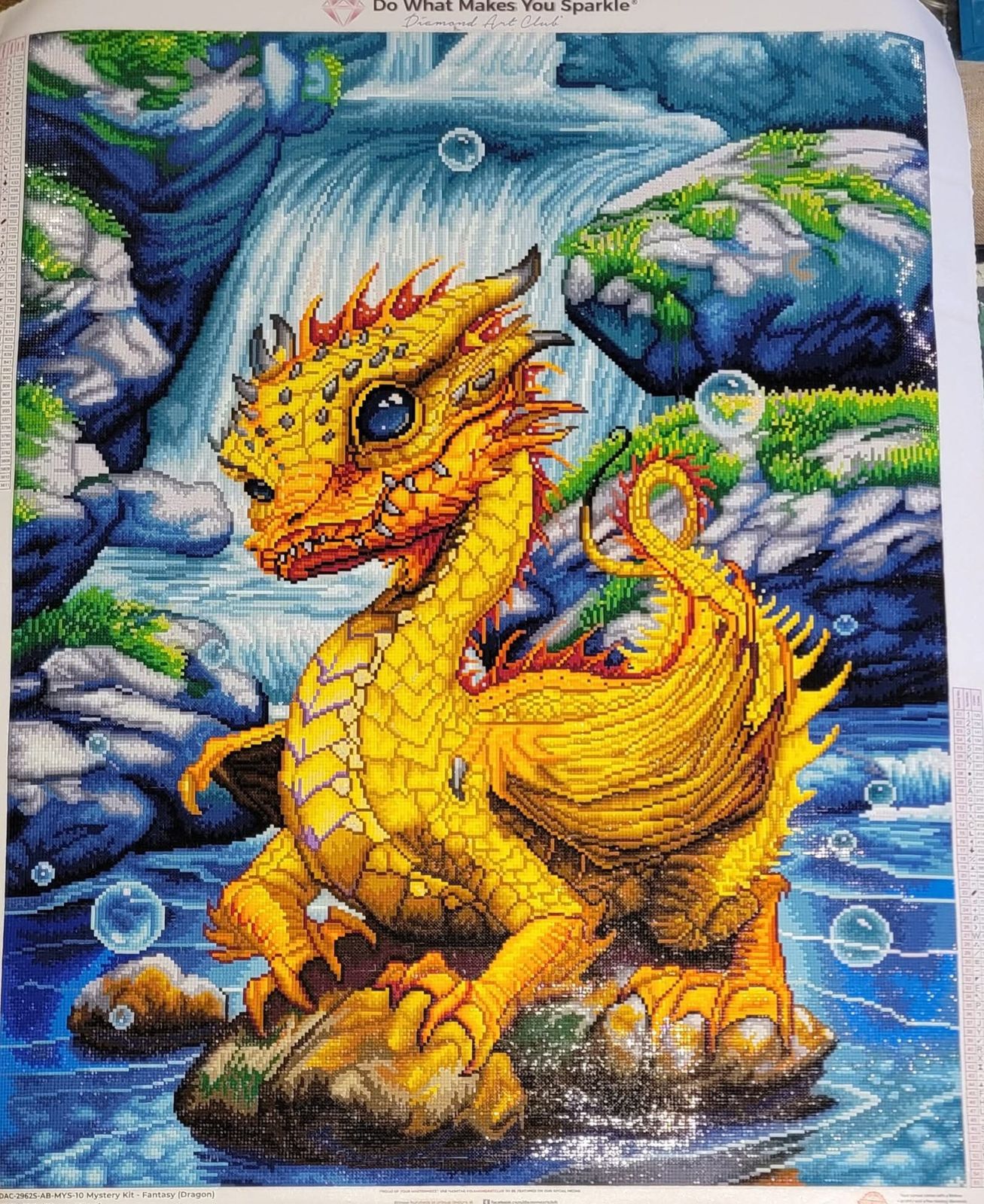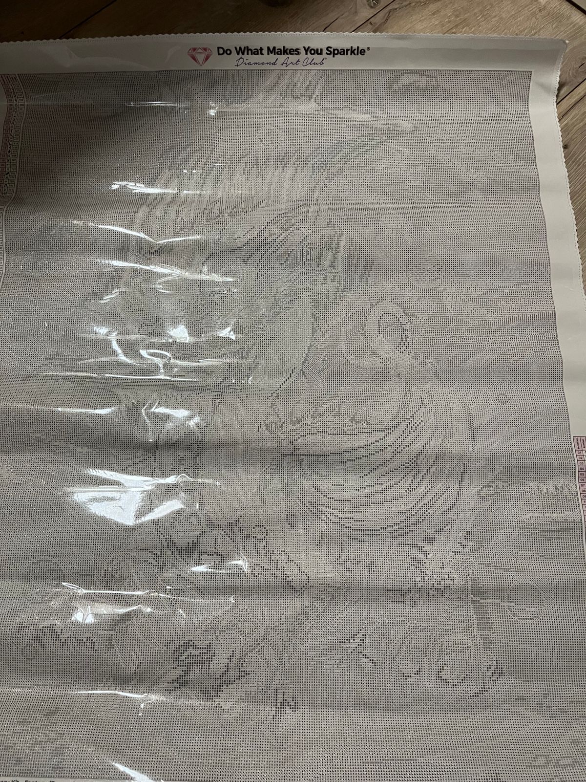 I really enjoyed this mystery kit. The black & white canvas made it more fun as the image appeared with the diamonds. It took me over a year to complete because it was my “traveling canvas” - taken on vacations and to art-days with friends. My friends also watched as I progressed. We all thought it is a beautiful picture.