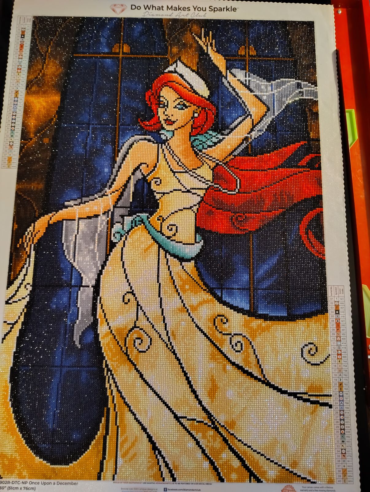 I realy enjoyed this diamond painting, love the finished result. Some of the colours I came very close to running out of, it did make me a little nervous. Also many of the shades of yellow diamonds had black dots on them, I just picked them out. As someone who grew up watching Anastasia working on this diamond paint flooded me with happy memories. I using all my spare time was able to finish the painting in only 9 days.