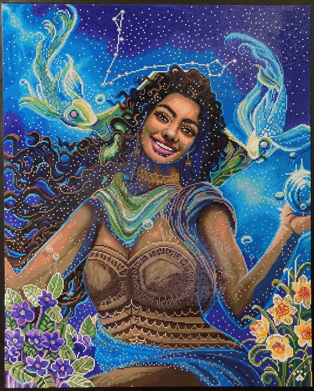 Another amazing zodiac by Dakota Daetwiler and Diamond Art Club! Drills fit together so well, grid is perfect. Added some bling for extra sparkle.