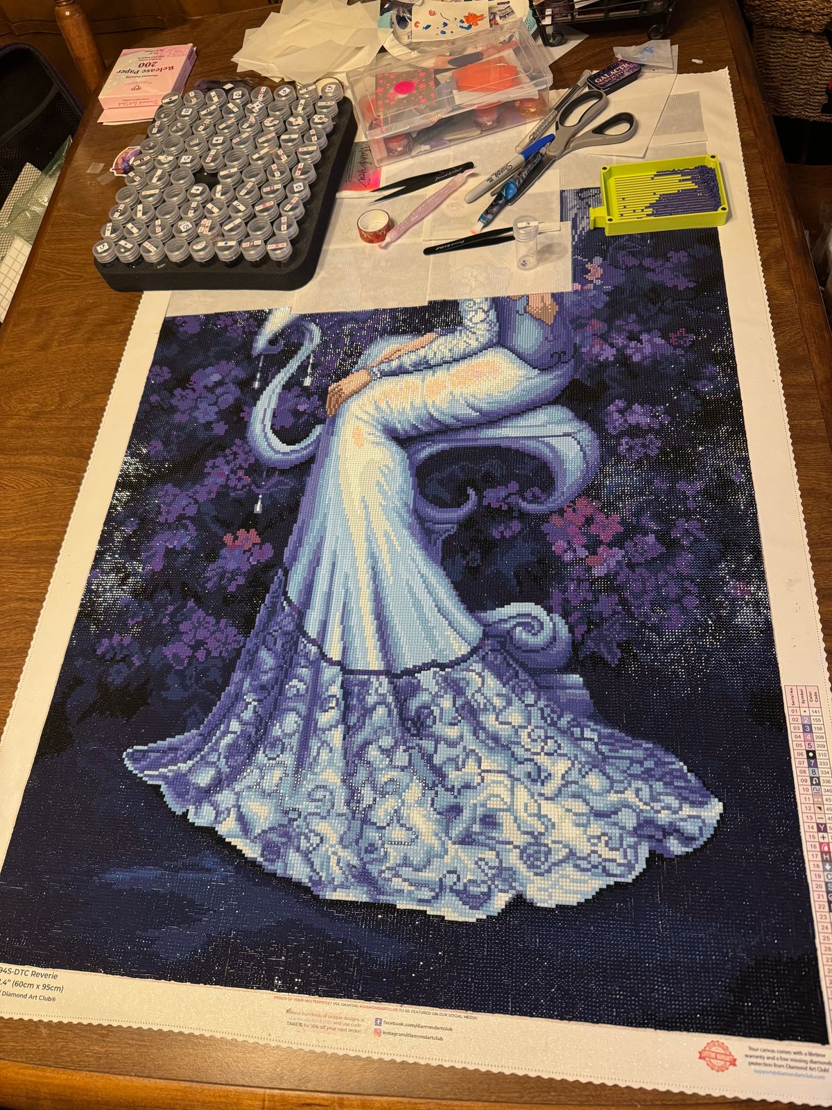 This is another gorgeous rendering of Ena Morte’s art. It’s a big canvas but will go fast if you multi-place your drills.
