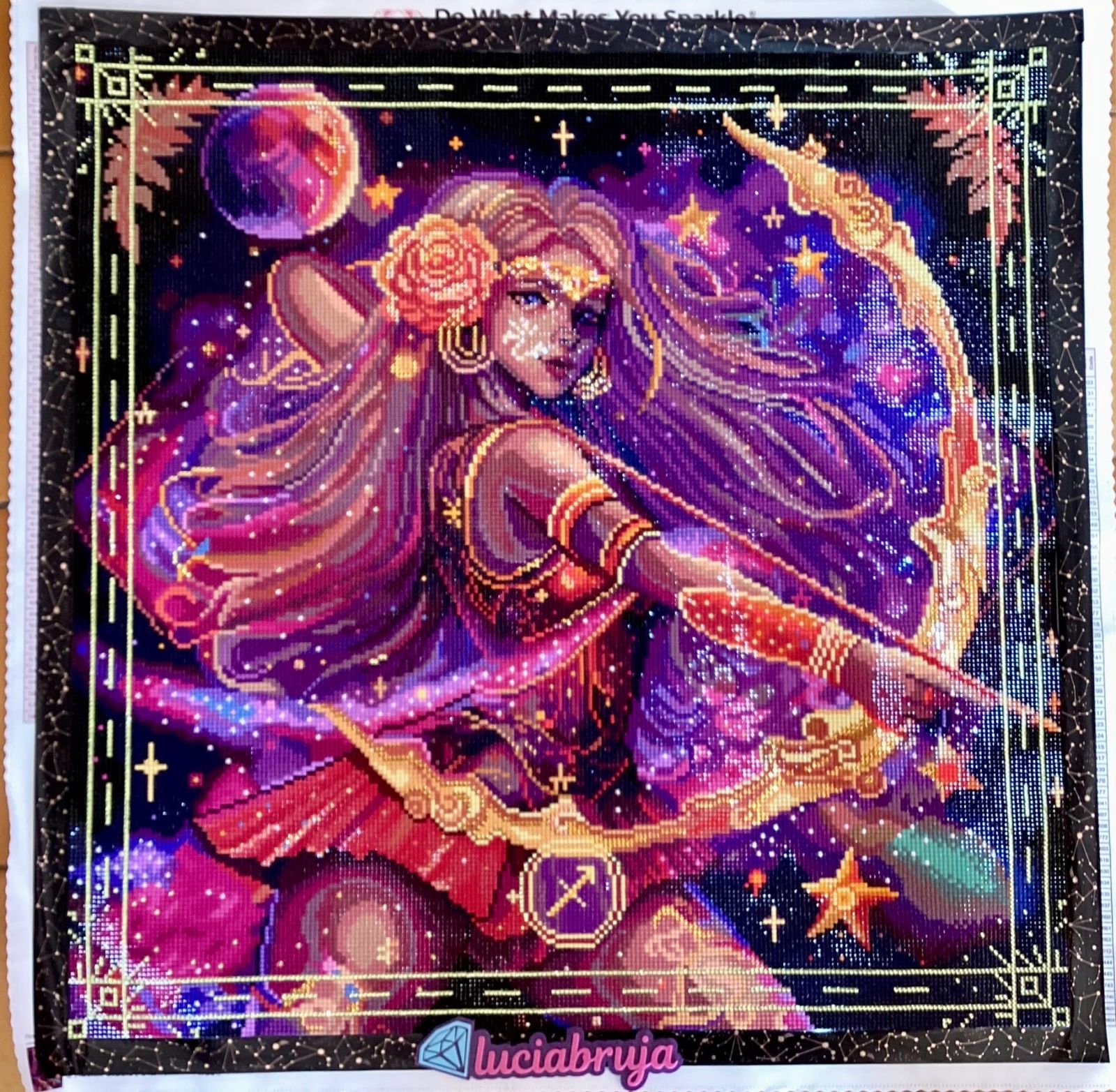 I bought this Sagittarius diamond painting for my birthday and she is just beautiful I love it.