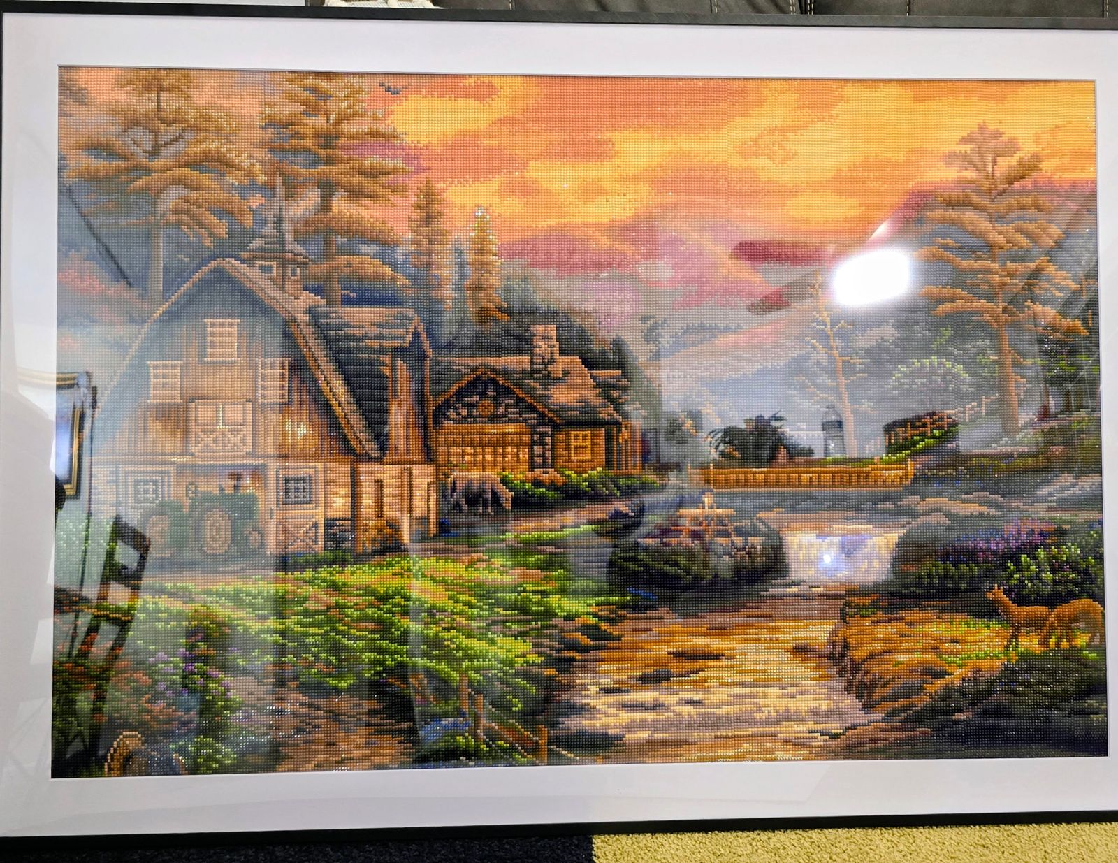 I finished it couple days ago, and it turned out beautiful, but I have to say that it was not easy task. The thing is that the spaces assigned to the drills in one big area on the right did not match the size of the beads, so I had to skip couple of rows to be able to keep it as much as possible aligned. I though it will ruin the painting, but fortunately it did not. My husband advised me to return it, but I decided still to give it a try and finally it came out ok.