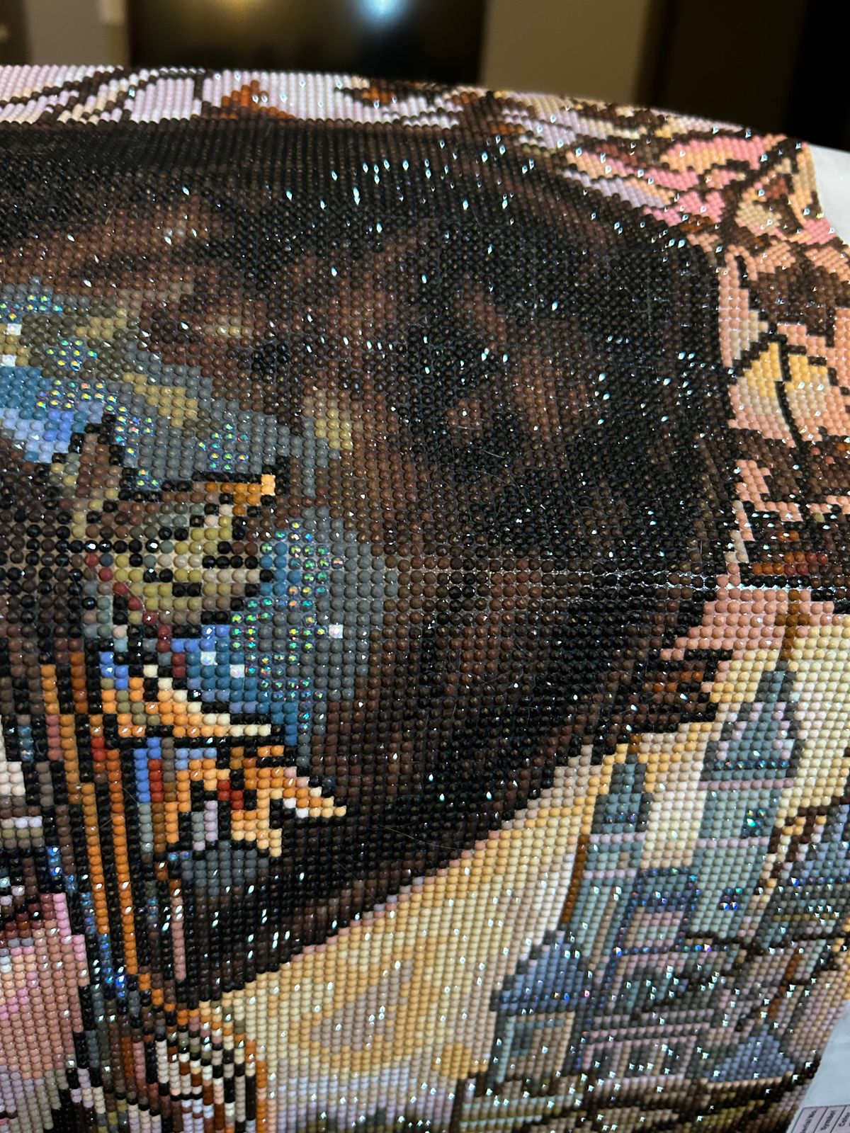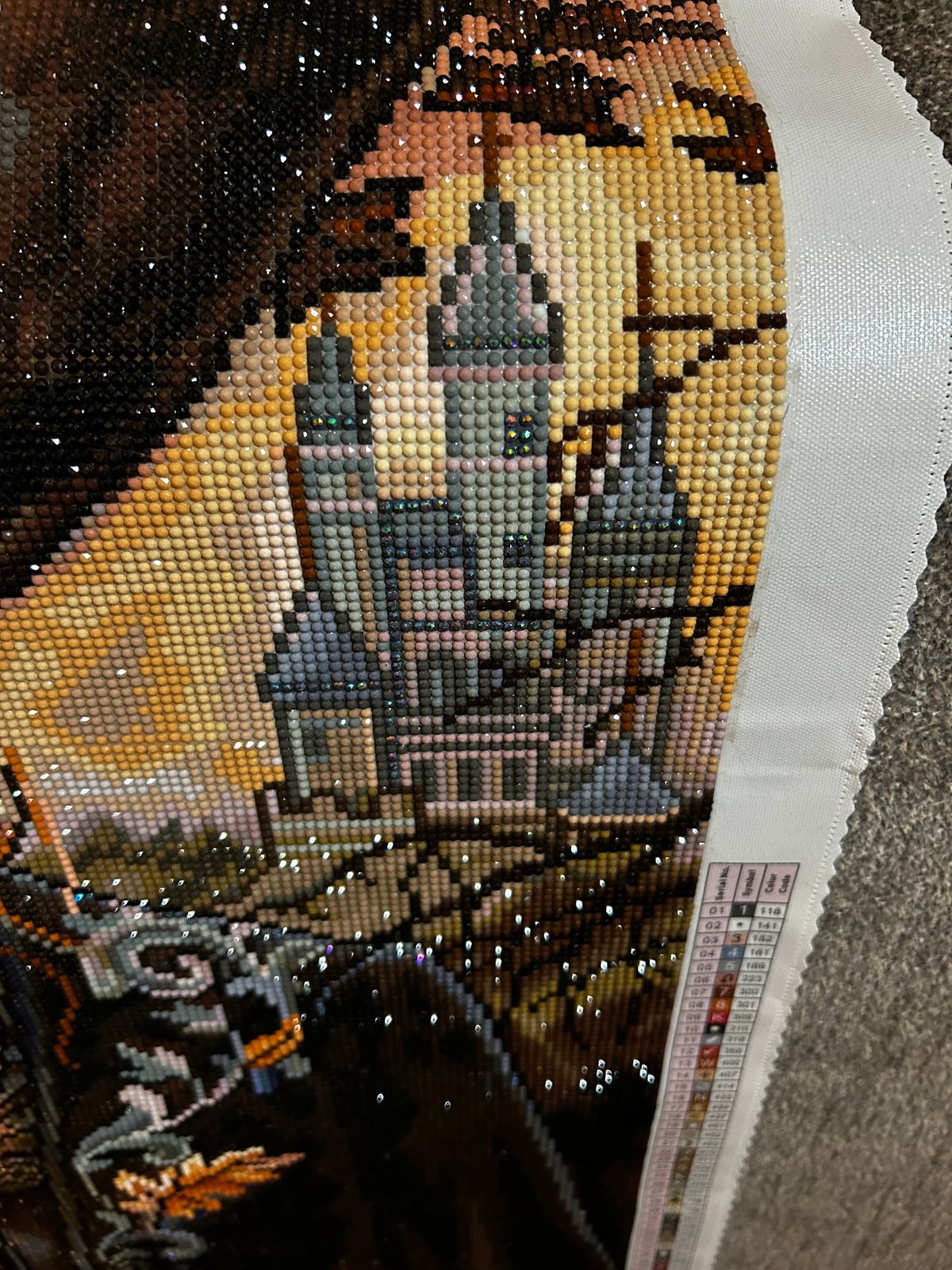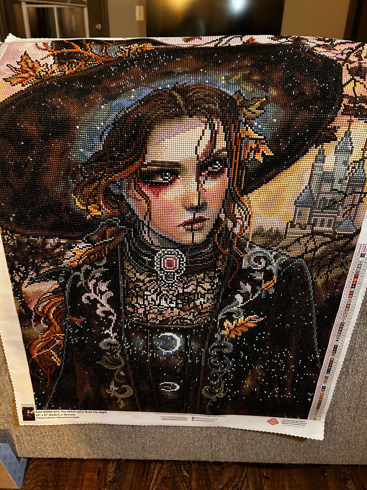 This is my first DAC project and my first large project. I had so much fun working this one. Took a month and loved every single minute! The art is breathtaking and the rendering is perfection. The sparkle is stunning and really was in awe as it progressed. I will be displaying this one n a frame above my fireplace for Autumn… especially October!!