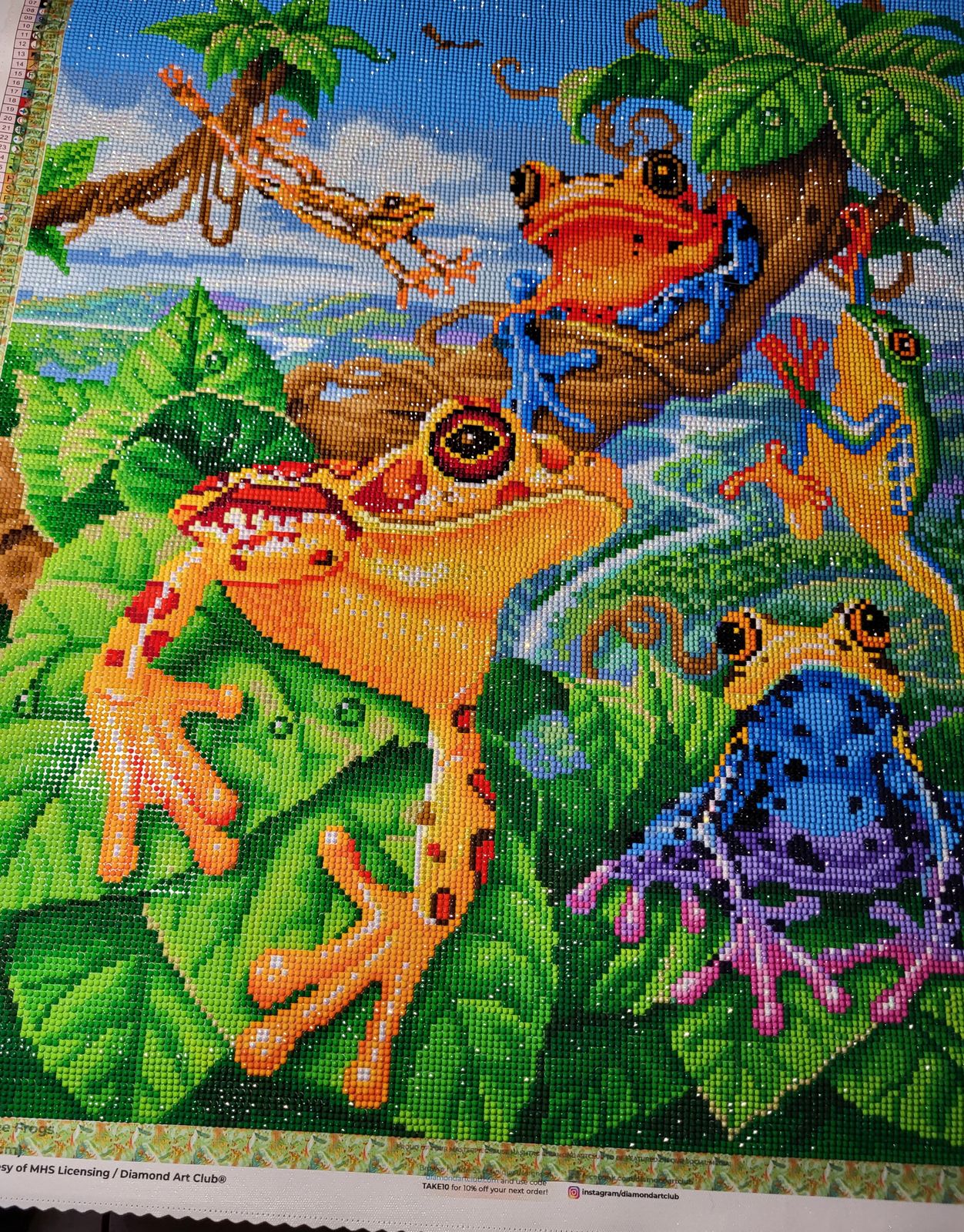 Stunningly vibrant colors that were so much fun to work with. My husband and I worked on this together as a gift for his mom who loves all things frogs. She’s going to love it!