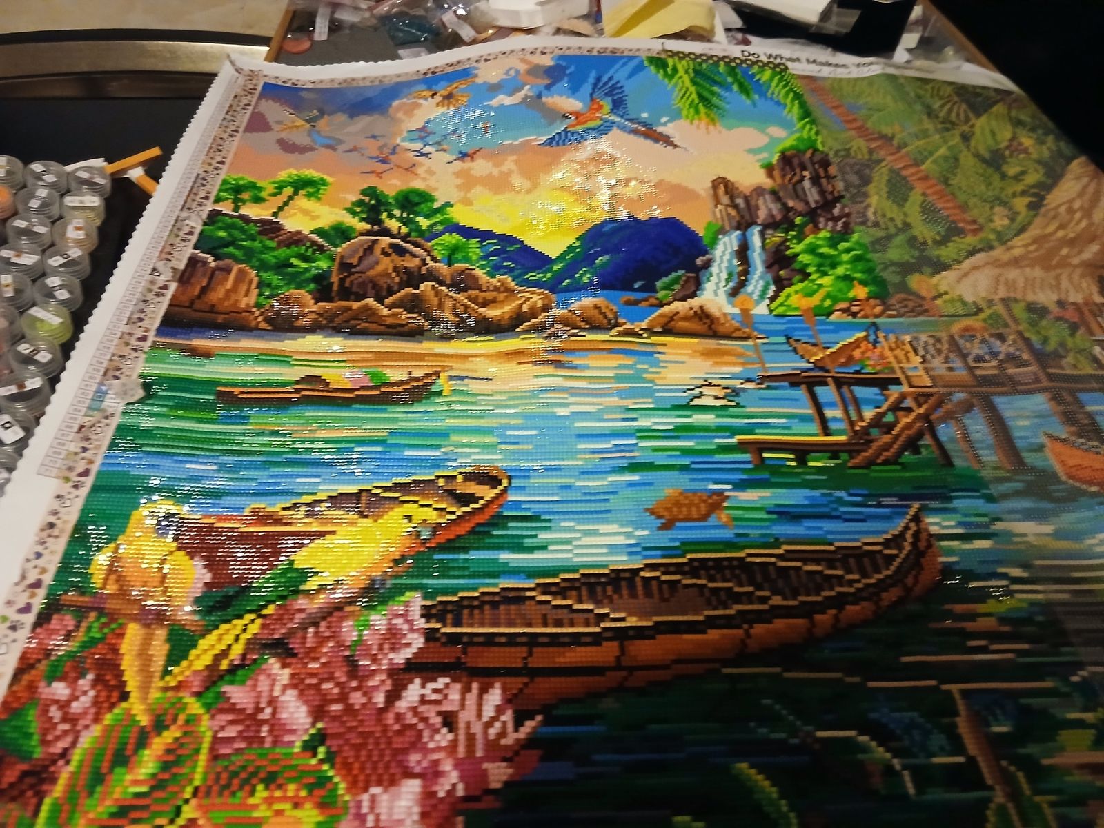 Love this painting reminds me of me of Hawaii life. It’s a very large diamond painting with many vibrant colors.