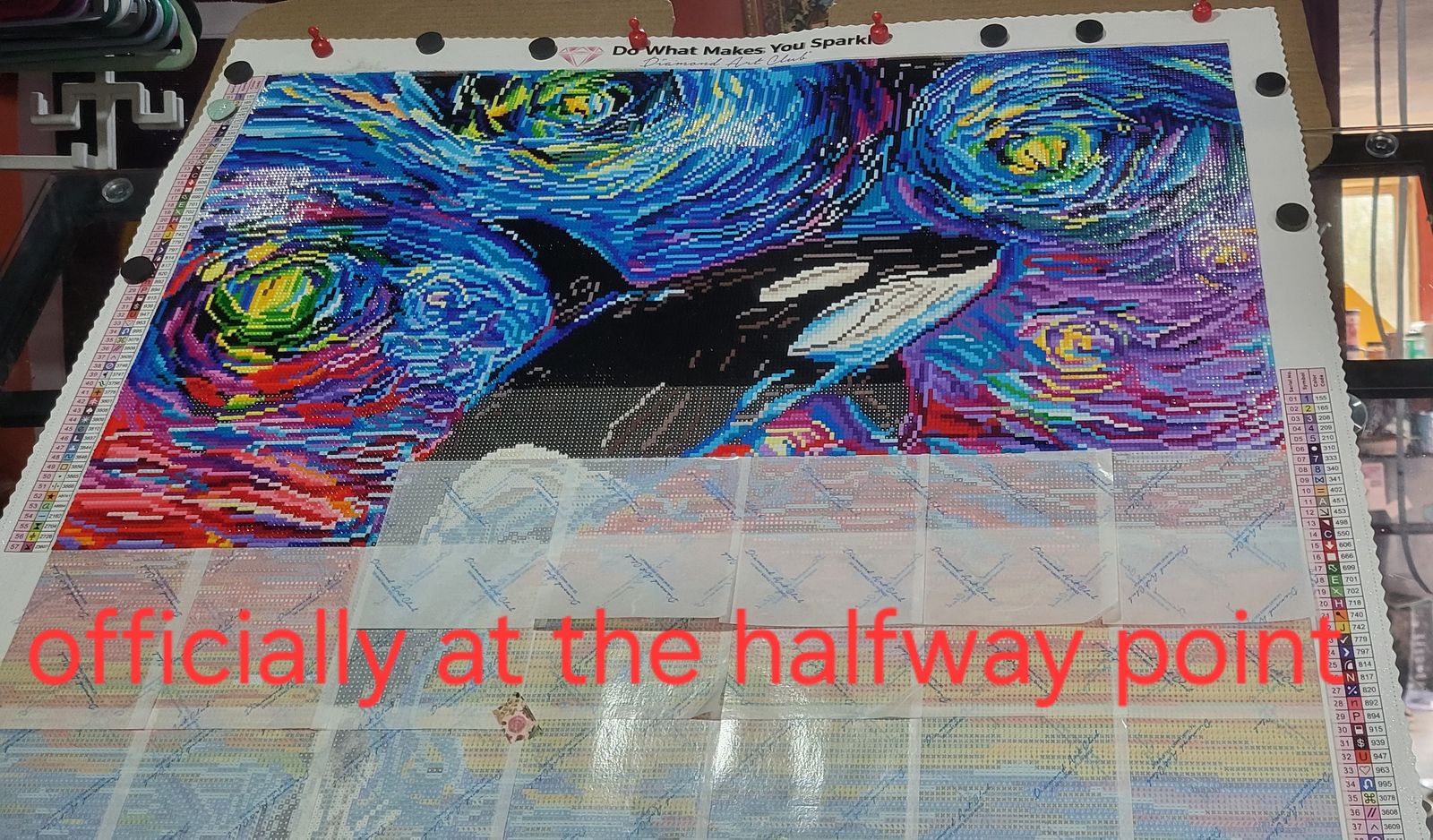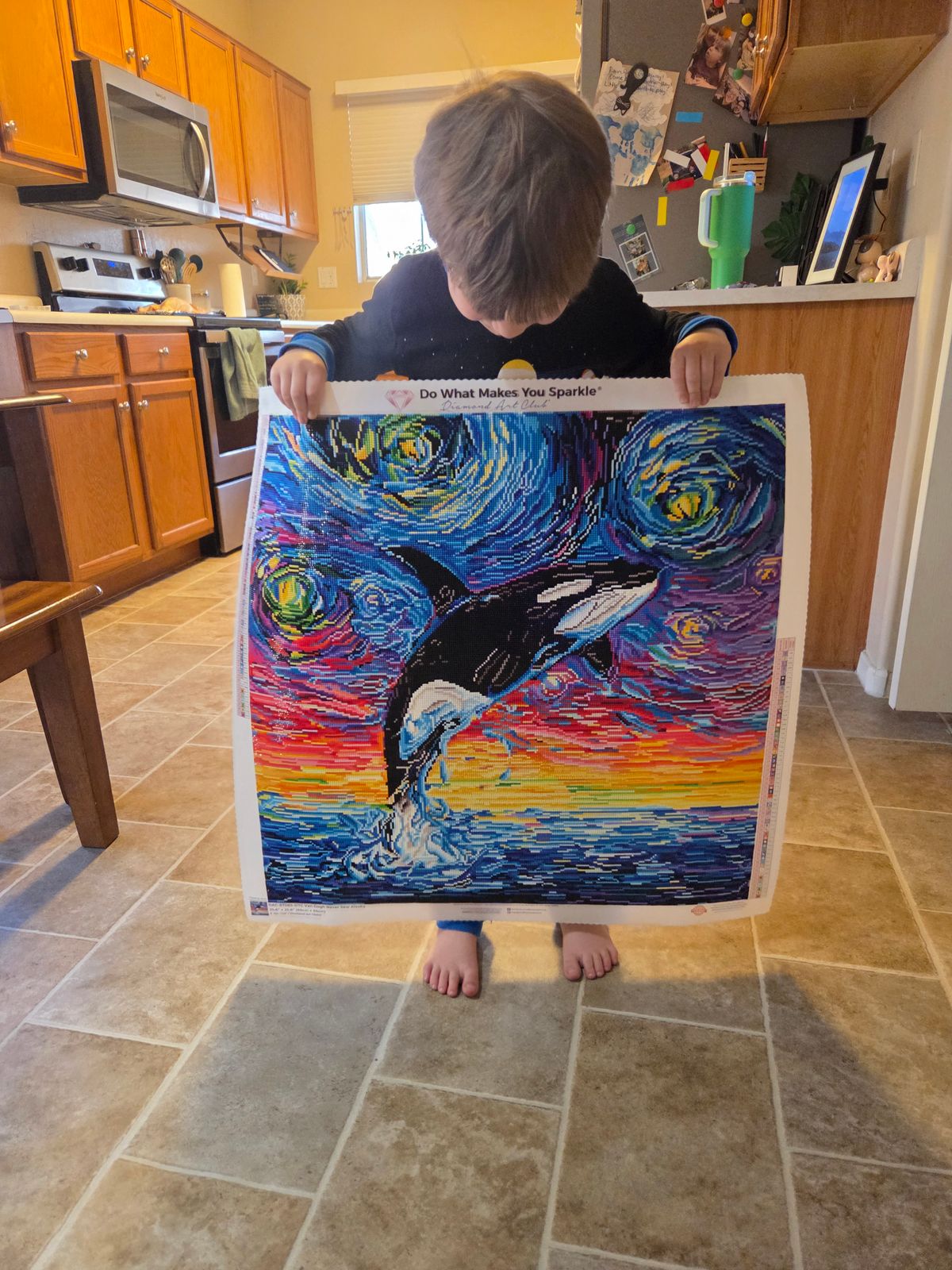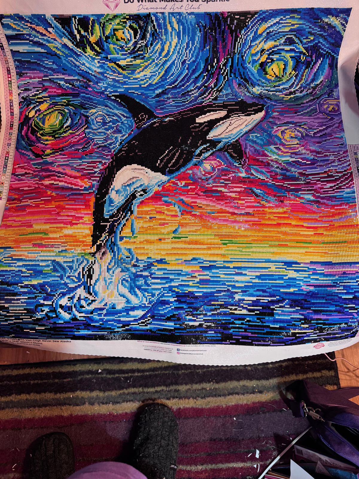 I bought this canvas to work on for my best friend as a gift. I kept it a surprise, she loves orcas and colors so this was perfect. This was my first dac complete, first squares painting completed, and absolutely stunning. I almost cried admiring it when I finished. Very challenging for a somewhat beginner but I loved that. Can't wait to start my next project.