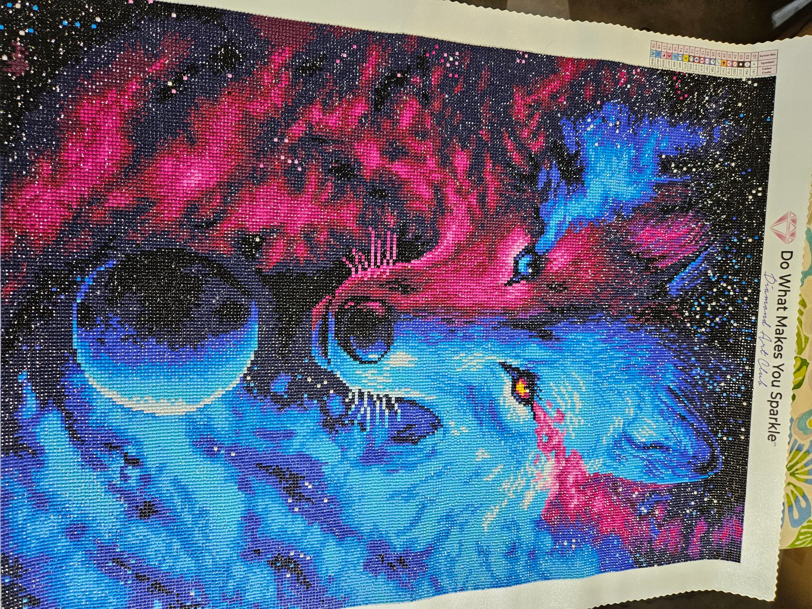 I really love this piece, the black dots were a little hard to keep in line, but otherwise it was very fun to complete. So so sparkly, and great quality. This is my favourite of all my diamond paintings.
