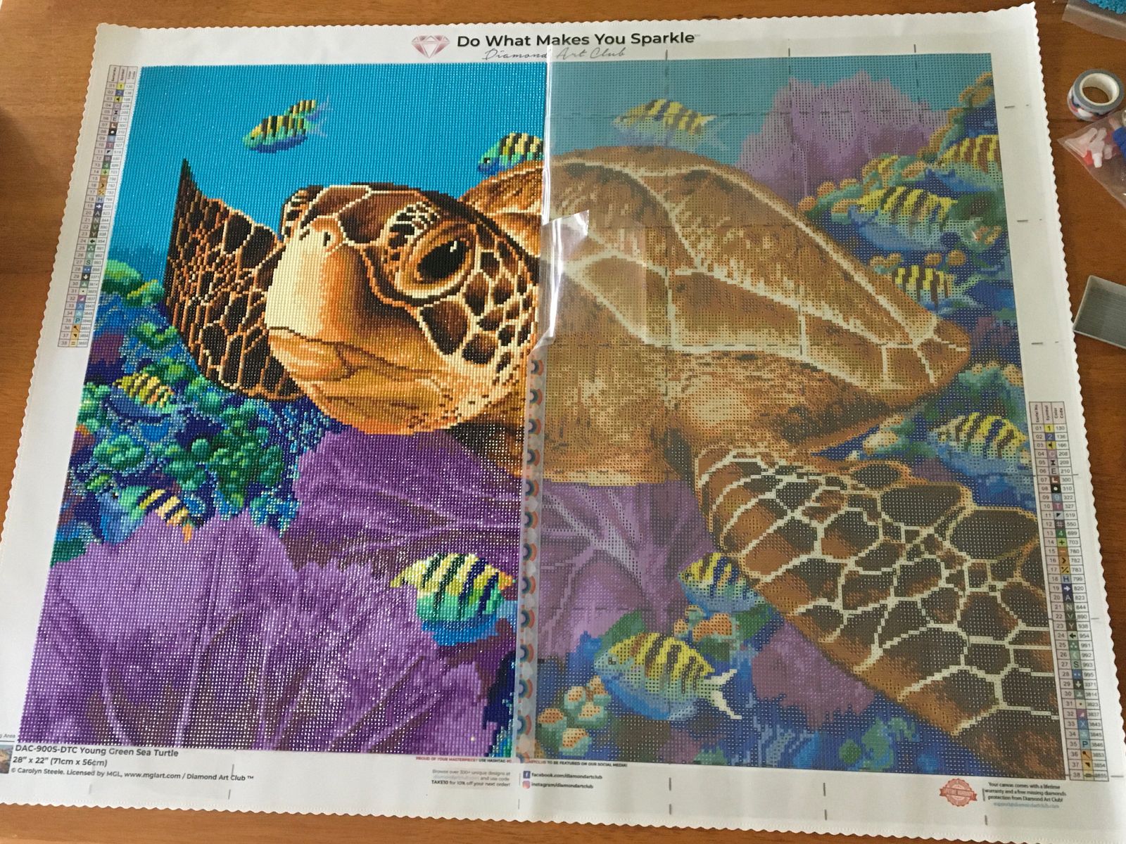 Diamond Painting Young Green Sea Turtle 28" x 22″ (71cm x 56cm) / Square with 38 Colors including 2 ABs / 62,604