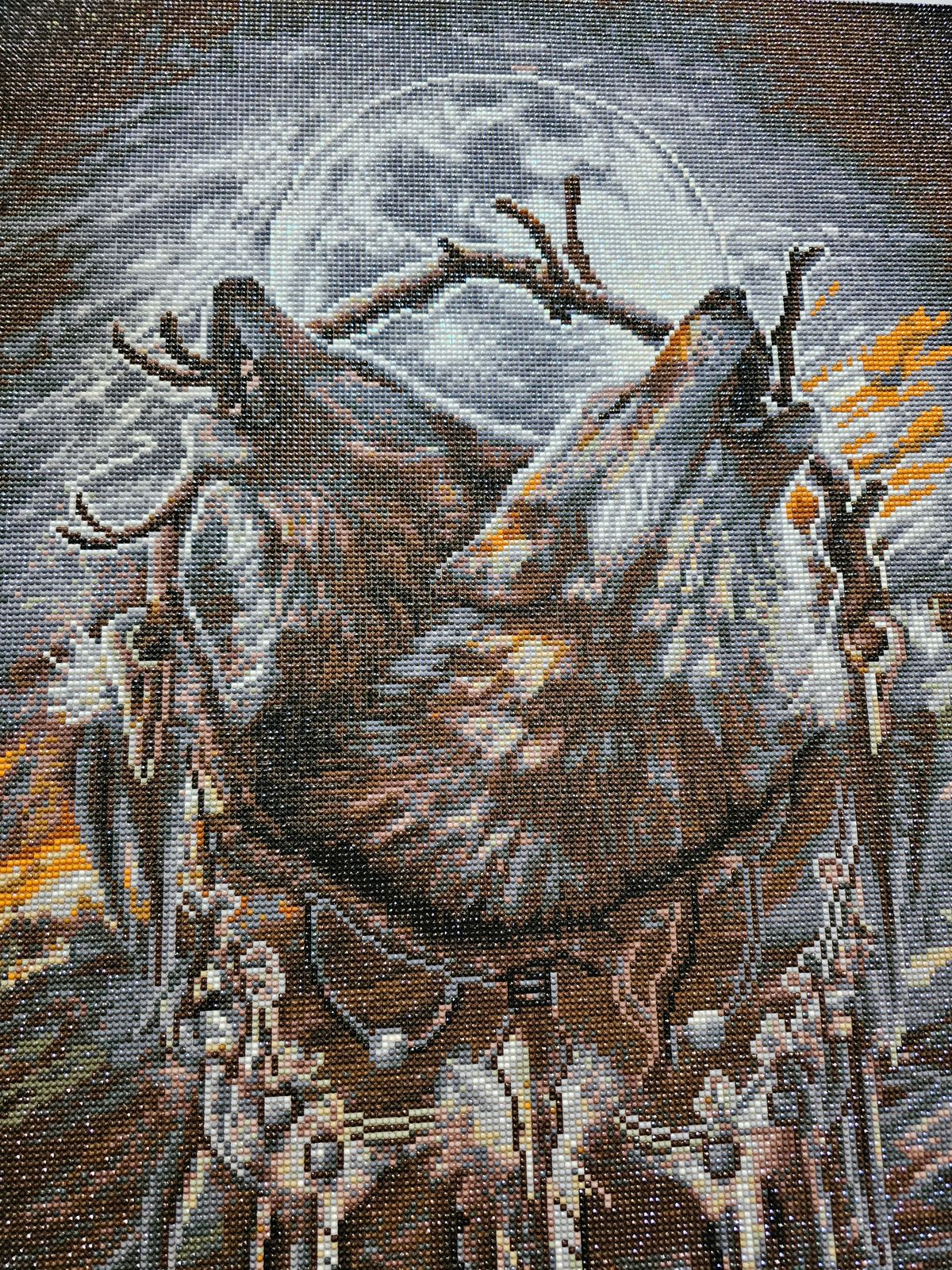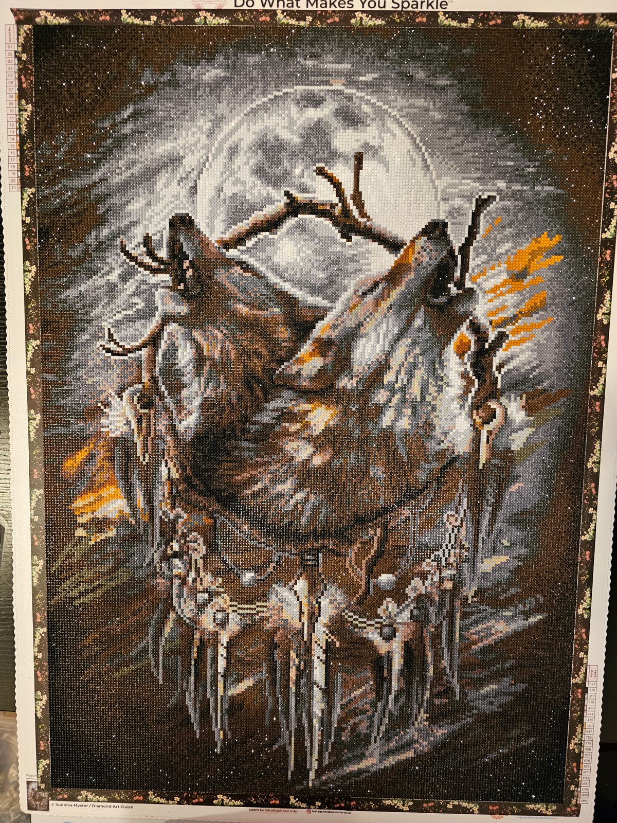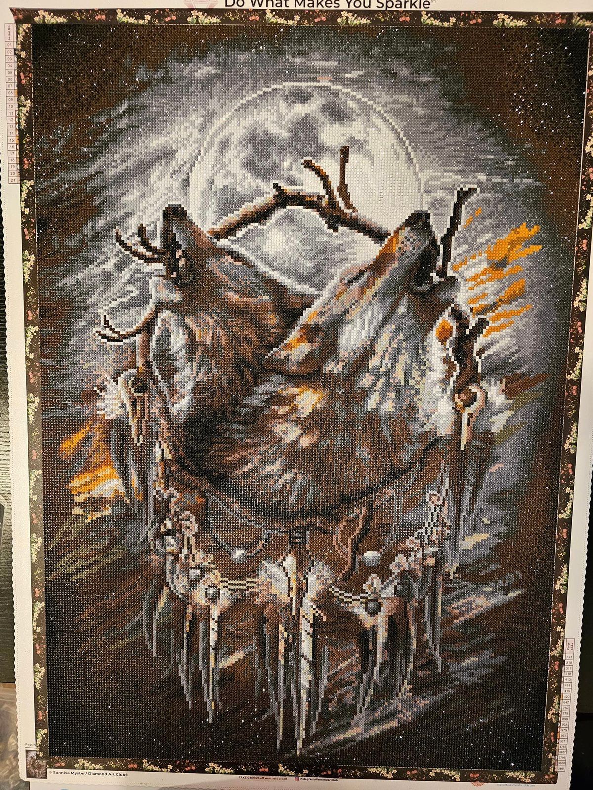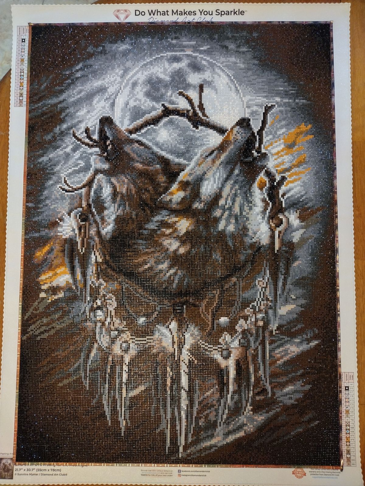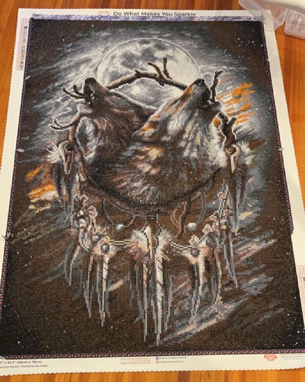 This is the first biggest one I have done . I was afraid I would get part way through and not like it, but instead I loved it. It is a beautiful picture and a lot easier then what I thought it be to do. It's an amazing picture and even though it's a darker picture, the colors are amazing and I an glad I stick with it took the end, just beautiful!!