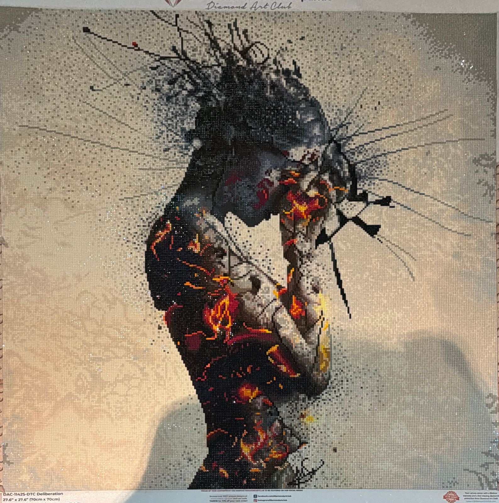 This was my 1st DAC canvas and my 1st square. I originally completed it 1 year ago and now have it hanging in my bedroom. I then purchased it a 2nd time to do it for a friend as she really relates to it. Everything about this painting is exceptional. I actually prefer large amounts of light colours rather than lots of blacks. The placements of the special drills are really affective and I feel it doesn't need any further enhancement.
