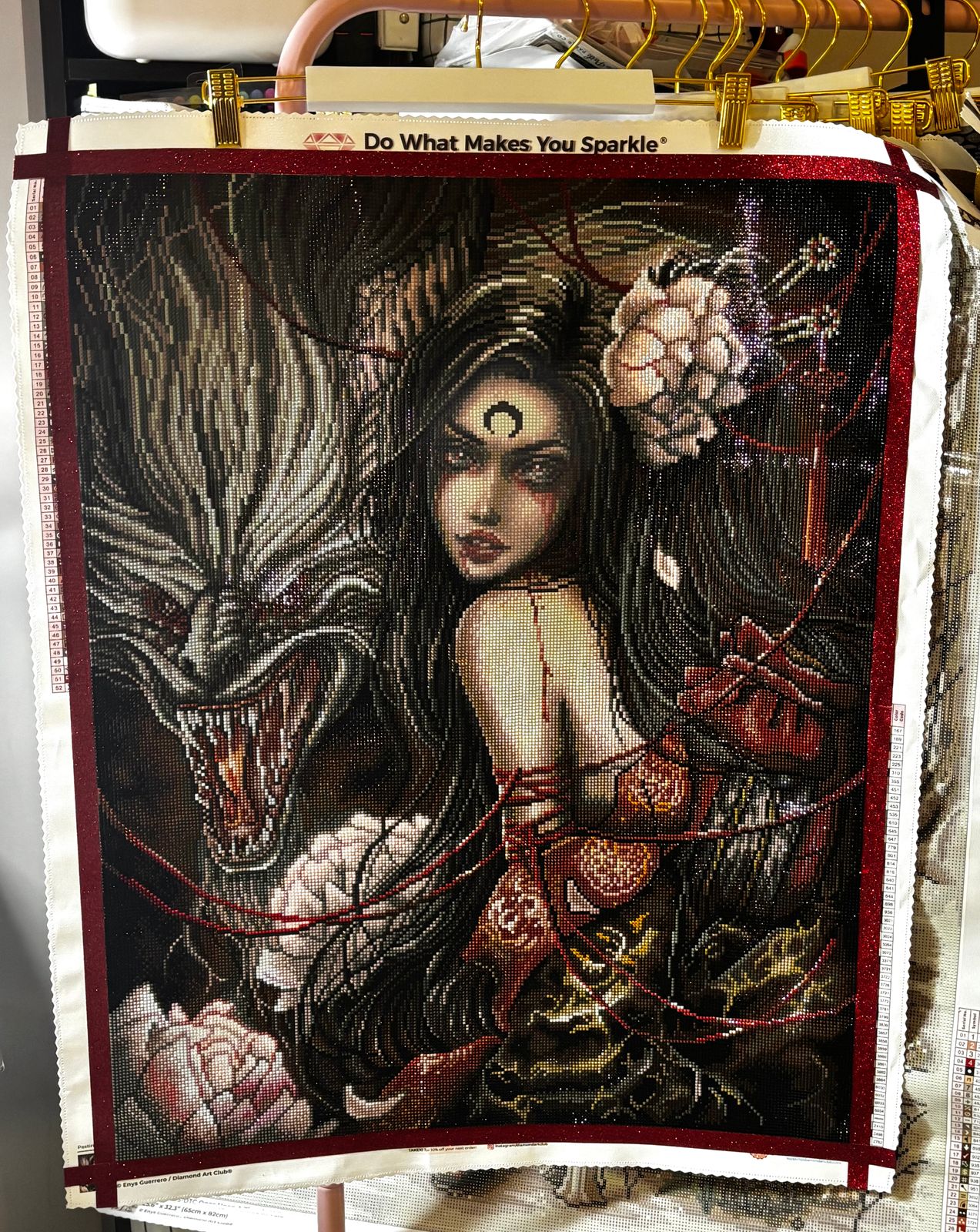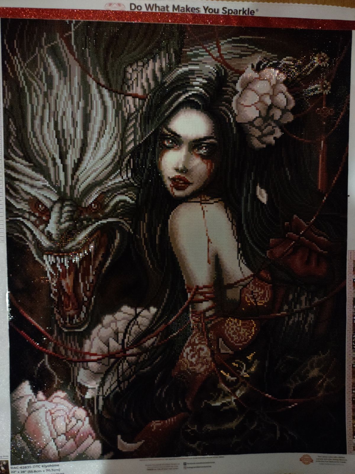 If you like bold, moody artwork with a story behind it, Kiyohime is a really satisfying one to work on and even better when finished.