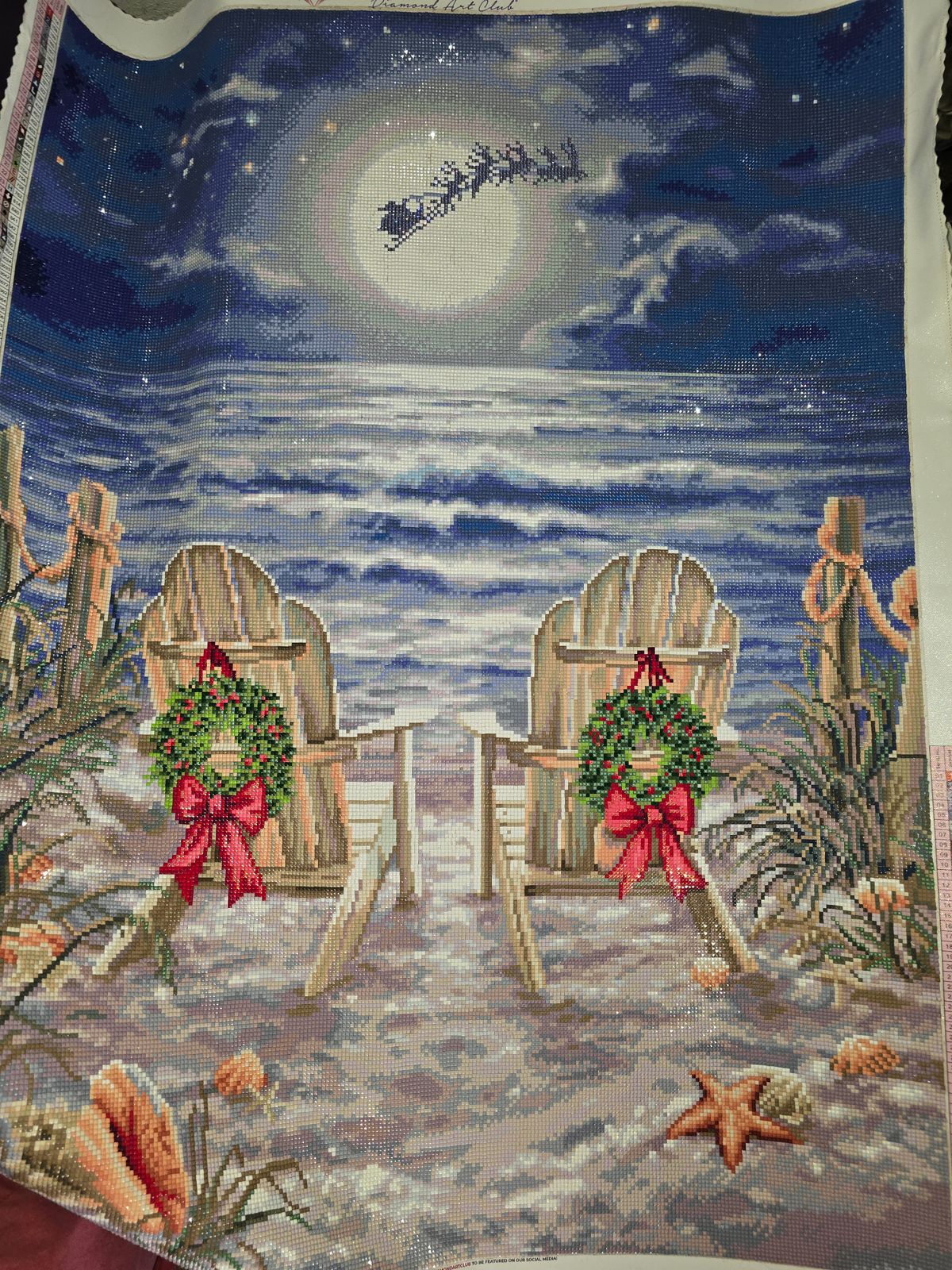 I bought this one because it reminded me of a couple of our X-mas vacations in Florida. So I was very happy to start it the beginning of December 2025. I wanted to finish it before X-mas. But the holiday preparation got in the way. I didn't mind at all loved every moment of it. Specially loved the blue iridescent diamonds. It looks they are a bit lower than the bright moon (which they aren't). So again 2 months well spent.