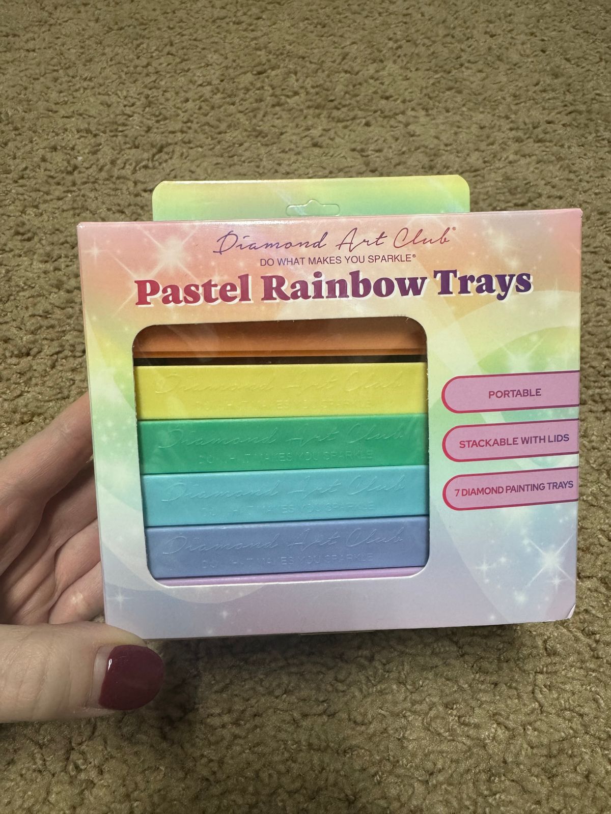 Organize your diamond painting sessions with our Pastel Rainbow Trays! This set includes seven vibrant, stackable trays with lids and stoppers to keep your workspace neat and your diamonds secure. Designed for convenience and portability, these trays are perfect for crafting at home or on the go.