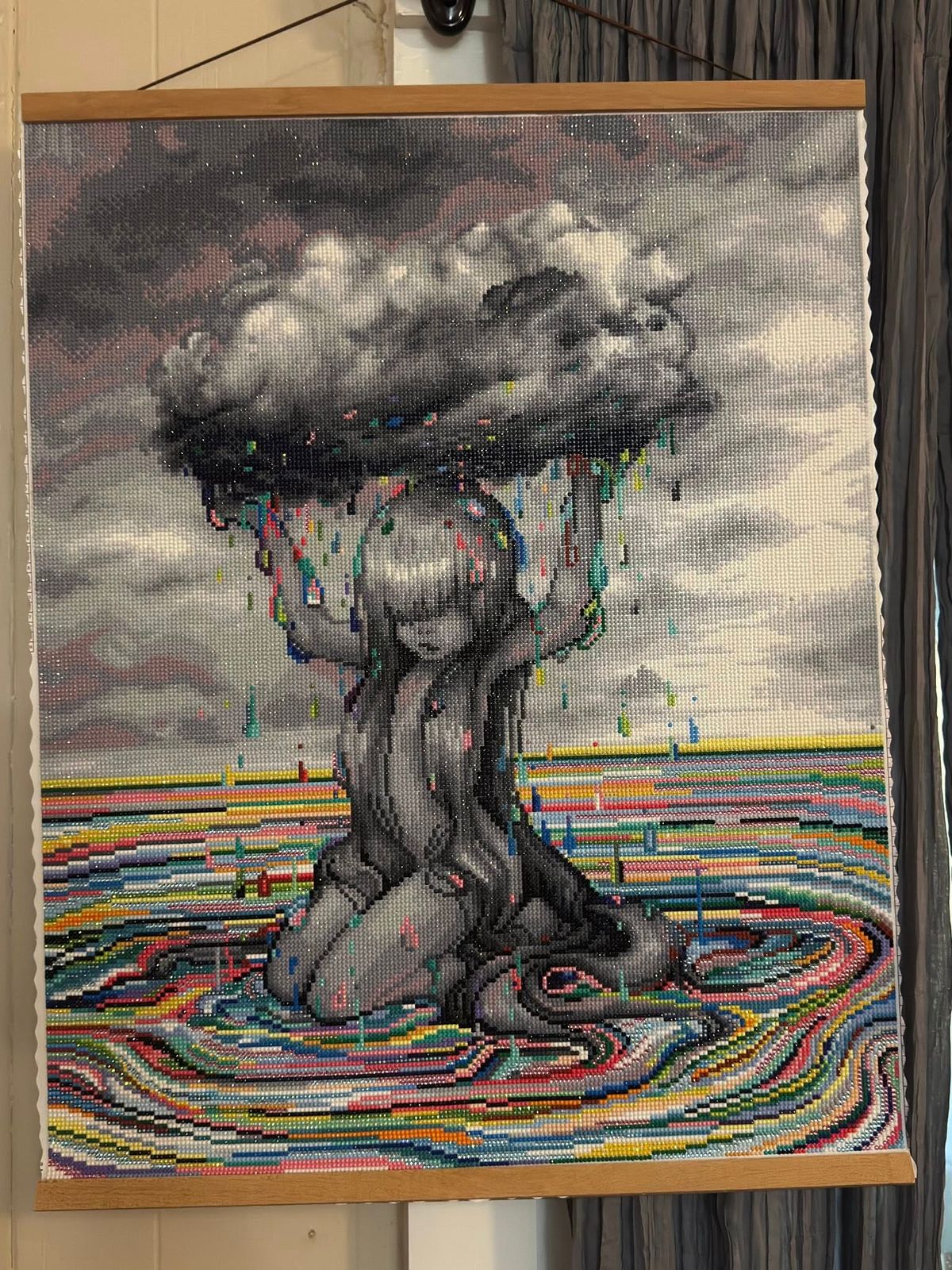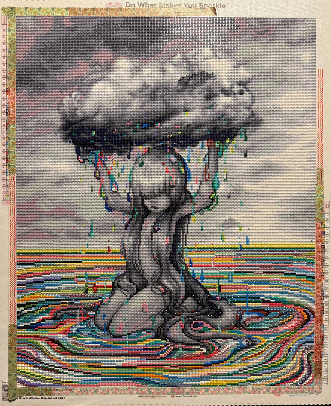 I really enjoyed this canvas. The sky may look like it’s just gray but there’s a lot more depth to it. The colorful rain puddle was so fun and this pack had more fairy dust, aurora borealis and iridescent drills than any other package I’ve had. I just wish there was more packs by this artist 😩 Highly recommend!